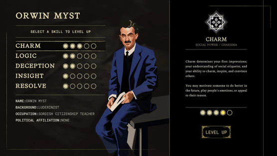 The Conformist is an upcoming semi-sandbox narrative role-playing game currently in development. Players guide a propagandist working for the government of Sordland, navigating the harsh political environment in the capital after a civil war and discovering their own path.
