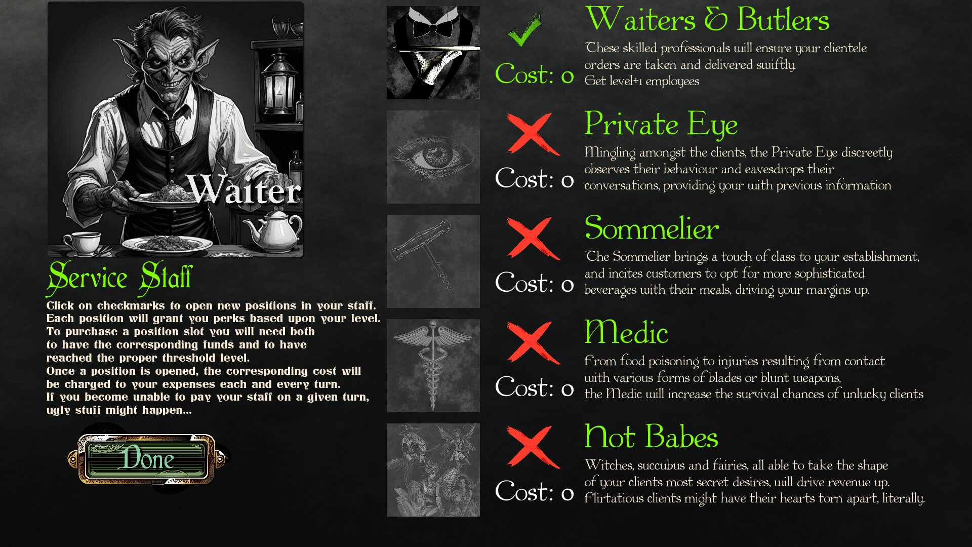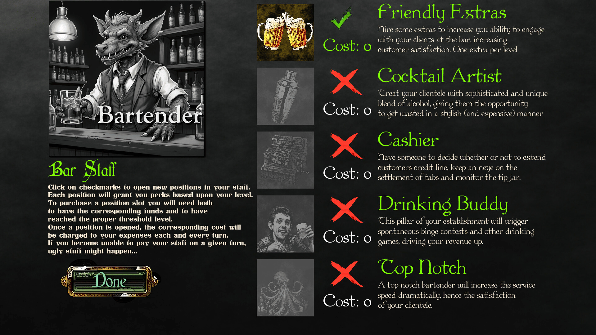 In this deckbuilder and tavern management simulation featuring RPG and roguelite elements, you play a destitute leprechaun trying to claw his way back to fortune and power from behind the counter of a derelict inn. You are no hero material, but unfortunately for you, your clients are!