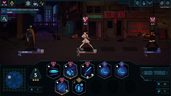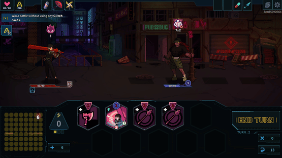Net Raiders is a single-player game that combines RPG, deck-building, and roguelike elements. In order to survive the dangers of the ruined virtual world, you must synthesize the cards in your hand to find the best move and defeat the enemies you encounter!