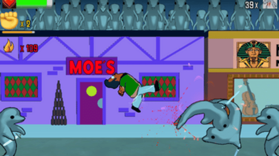 It's the ultimate battle for Springfield! Based on the TREEHOUSE OF HORROR episode segment, choose a citizen and duke it out with some deadly dolphins looking to take over the town! Stand your ground against the endless streaming horde of aquatic attackers and push them back to the ocean!