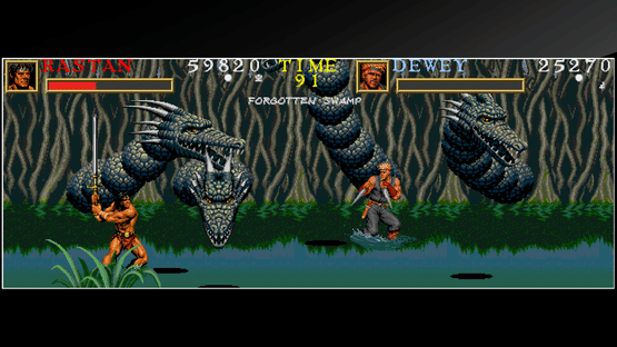 Hear the murmur of fate: “Go forth hero, to the kingdom at the end of the earth!” WARRIOR BLADE is a beat ‘em up game released by TAITO in 1992. Rastan the thief and his allies set out for Depon, at the ends of the earth, in search of the treasure said to hidden there. This is the third game in the Rastan series, released in arcades as a two-screen cabinet, allowing for an enlarged play area and driving soundscapes to enhance this spectacular action adventure!