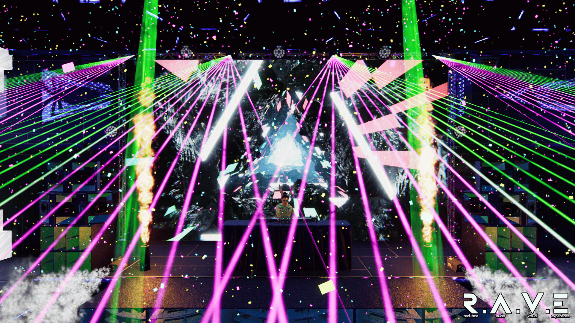 R.A.V.E is a multiplayer concert simulator for experiencing livestreamed events. Create the stage, set the lighting, and start the show! Your audience awaits.