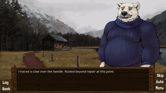 A grieving bear is taking a short stay at an old fishing cabin, hoping to reel in one final trout during a winter holiday. In his despondent isolation, however, he meets someone new who may rekindle that spark he's been looking for. Will he get his colors back, or will his world stay faded and gray? This project was made for the novemBear 2024 Furry Visual Novel Jam.