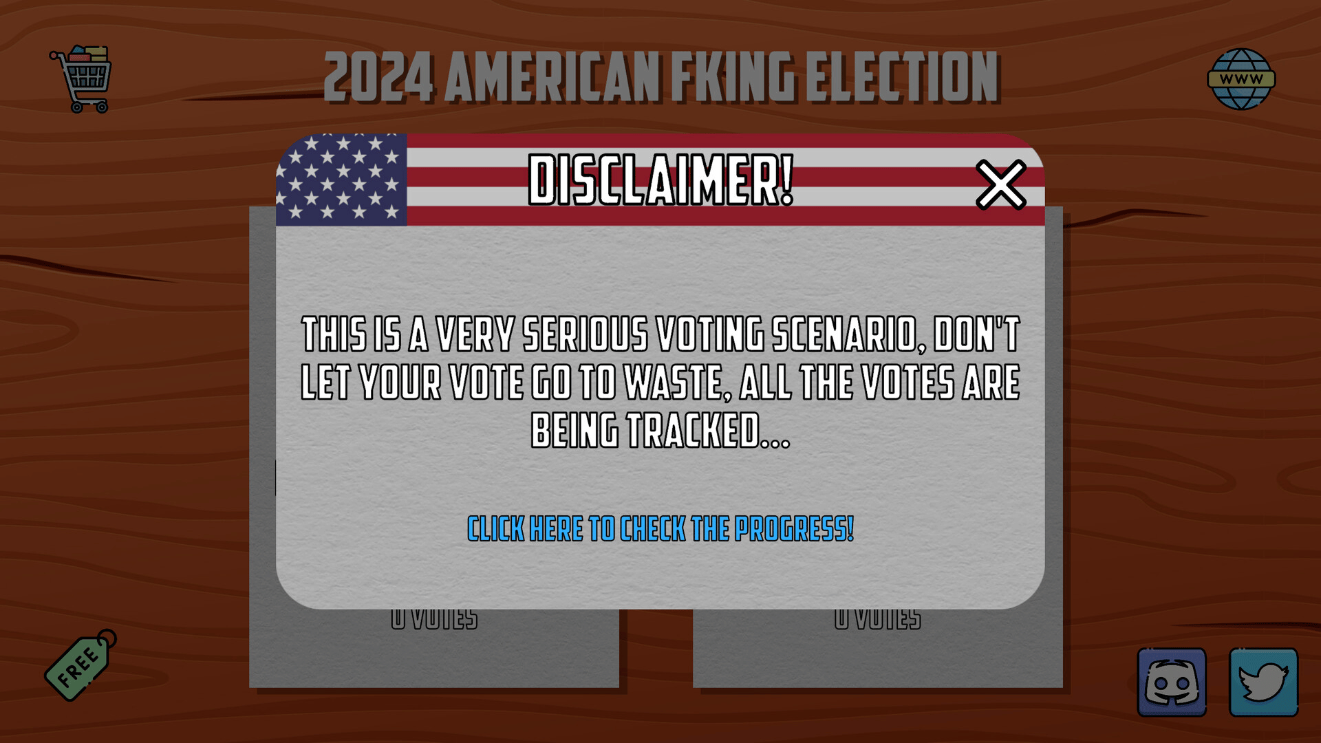 American FKN Election is a clicker game in which you click on your favorite politician and get handsomely rewarded! Between 2 and 12 hours, you get a dollar bill of multiple rarities. The dollar bill drops will change once every 7 days. Join our community and collect them all!