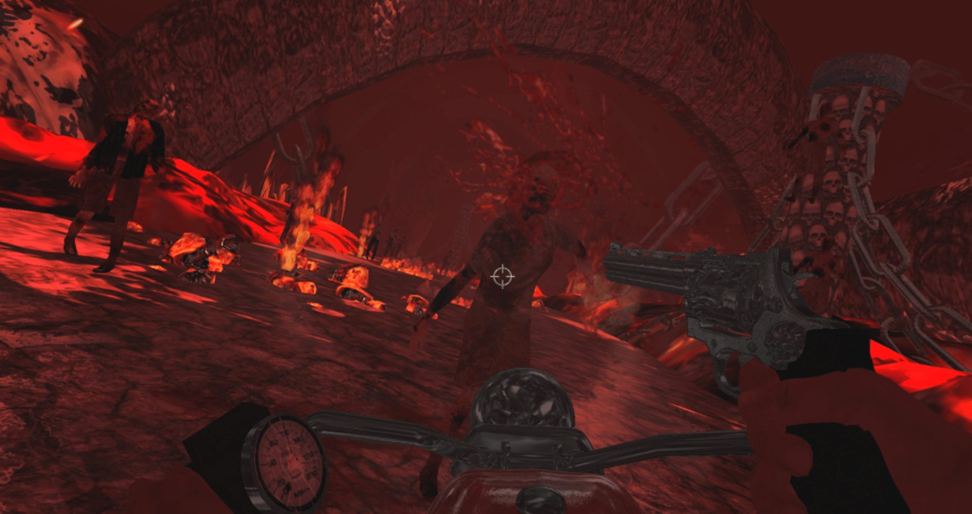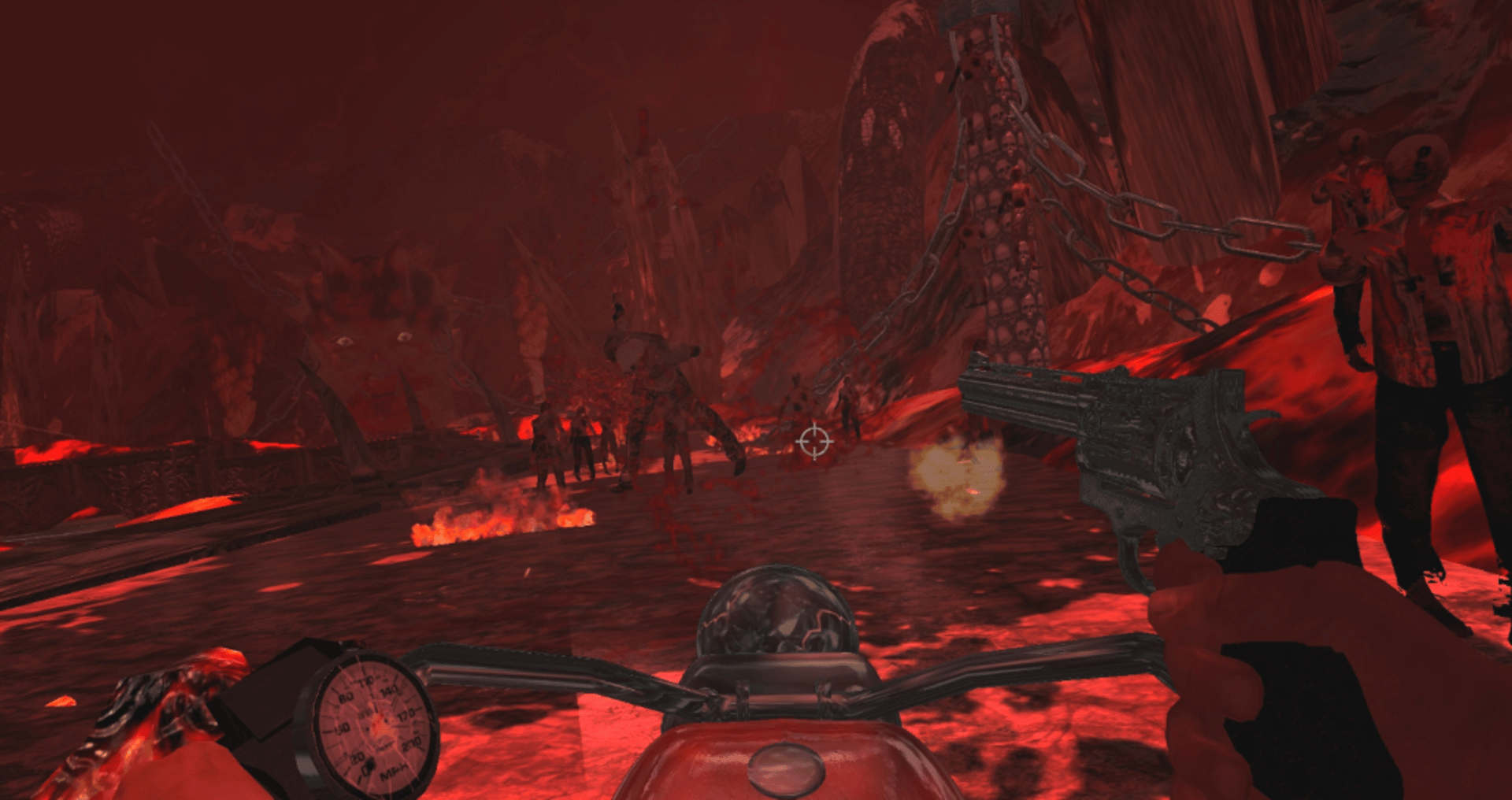 Motorcycles, guns, monsters and bikini-babes. Led It Rain is first person shooter motorcycle driving racing game. Faster you drive and shoot monsters more score you obtain. Each race track has three laps of horror and adrenaline. Scream!!