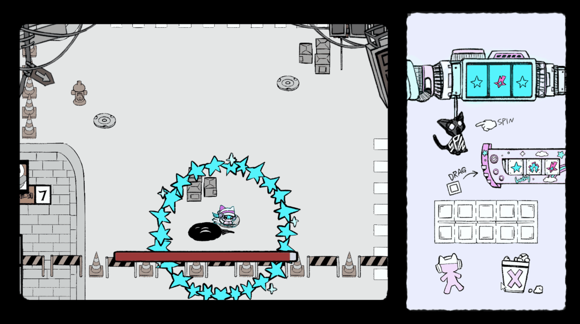 The gaming-obsessed magical girl decides to save a world corrupted by monsters. Pull the cat charm, spin the slot machine on her wand, and defeat the dark creatures!