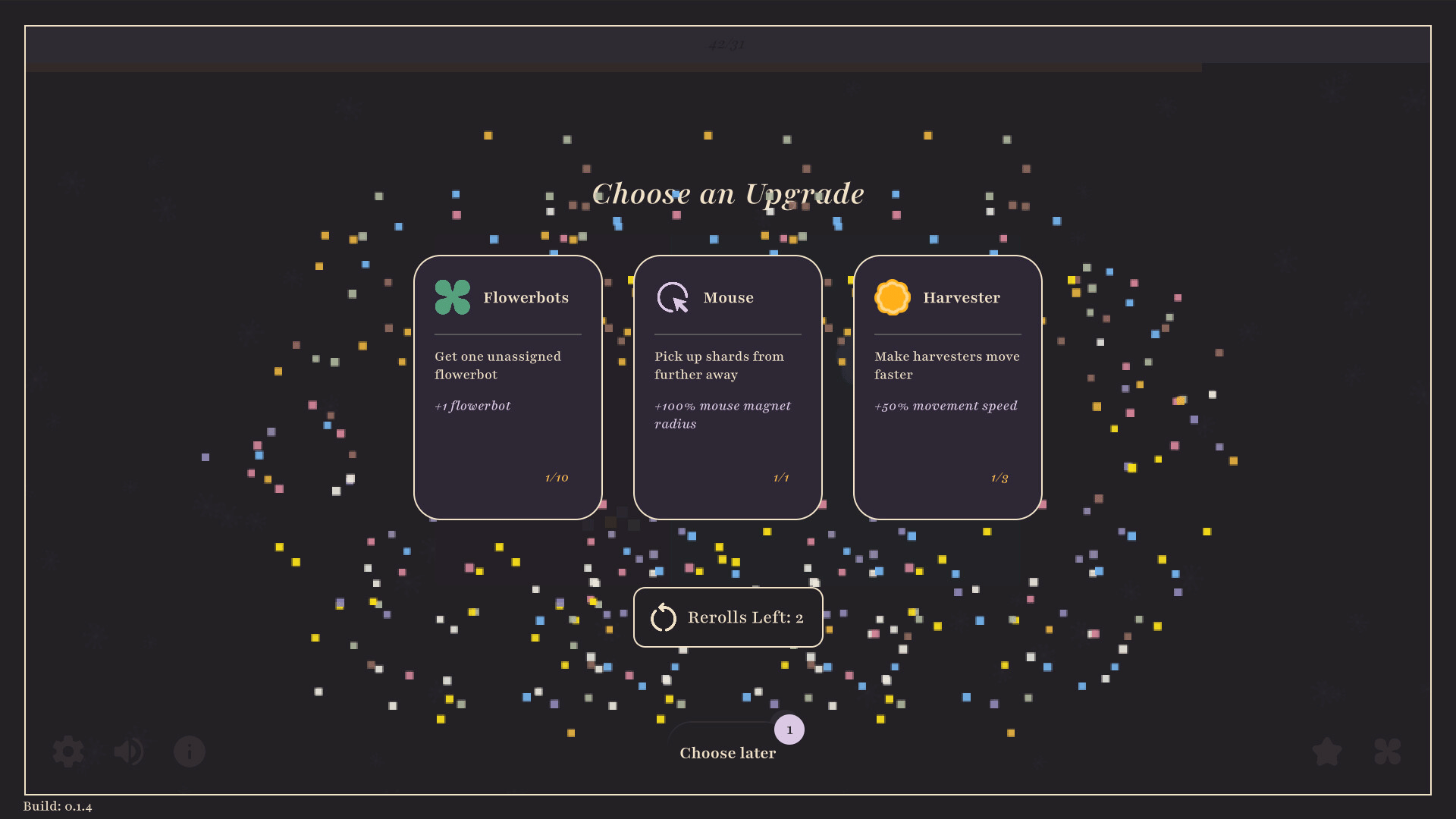 Flowerbots is a short incremental journey about upgrading the bots, uncovering their synergies, and nurturing an efficient garden.