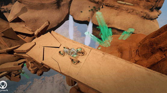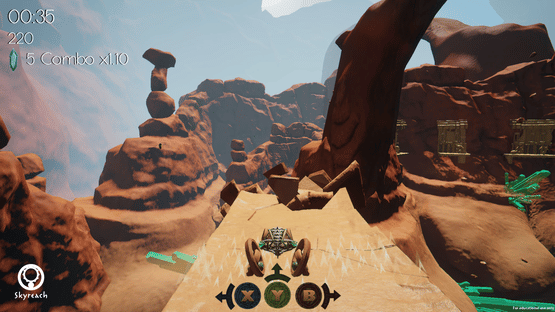 Skyreach is a free game inspired by playing with car toys and building tracks for them to drive on. It's an exploration of building track and driving at the same time, instead of the more traditional build track first, then drive on it after. Players are able to build one path piece a head of their current location. This requires players to not only successfully stay on the path, but also plan where to build in order to reach the end of the level. The environment for Skyreach was inspired by the Arches National Park of Utah mixed with the floating rocks on Pandora of James Cameron's Avatar. We also drew inspiration from the rock carvings of Petra, Jordan and Palmyra, Syria.