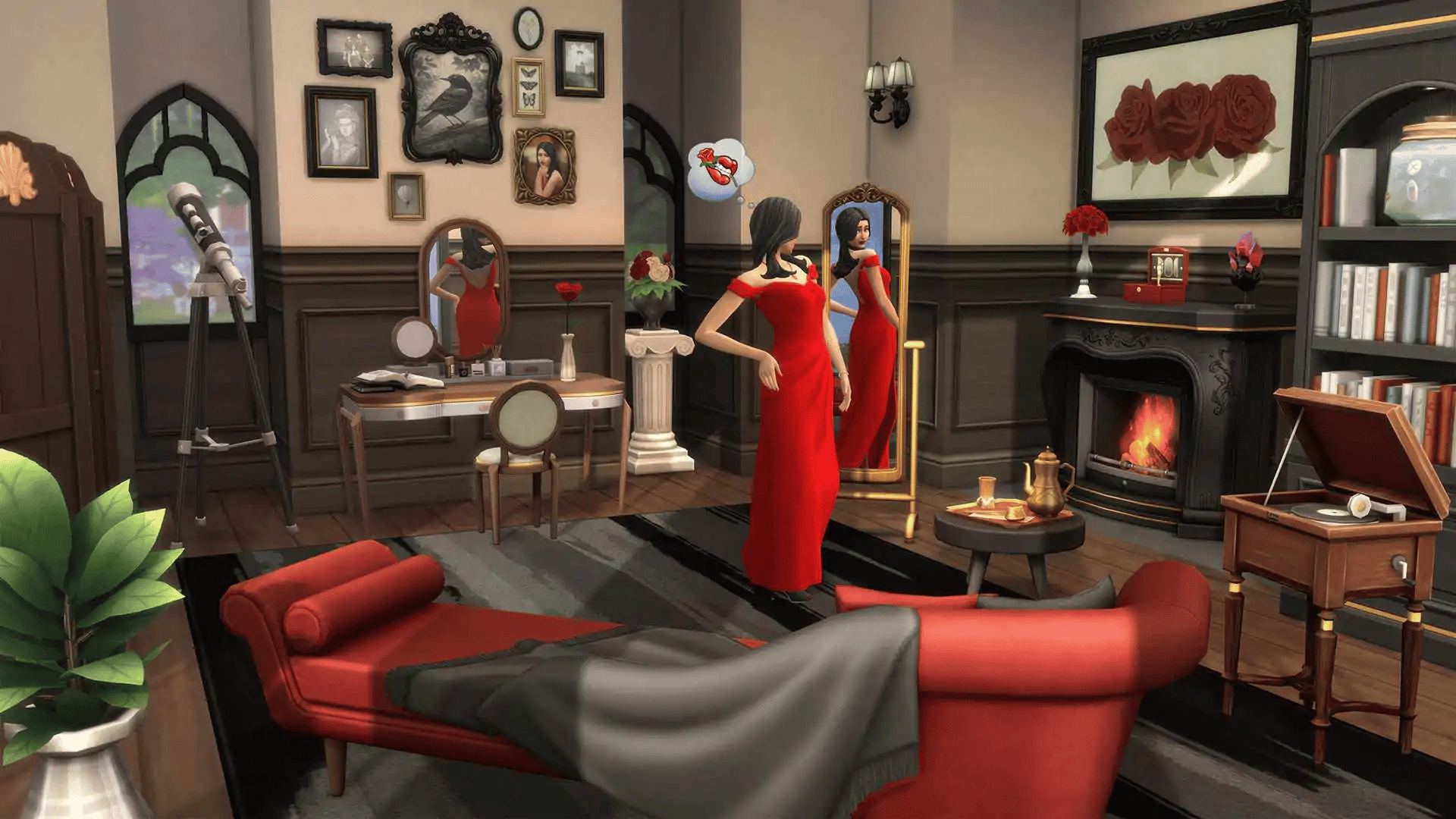 Indulge in iconic fashion and enchanting décor with The Sims 4 Secret Sanctuary Kit. Create a luxurious space full of opulent furniture concealed behind a secret passage in a bookcase. When you’re inside your hideaway, let the world melt away as you relax on your chaise lounge or try on polished Italian-inspired fashions in your floor-length mirror.