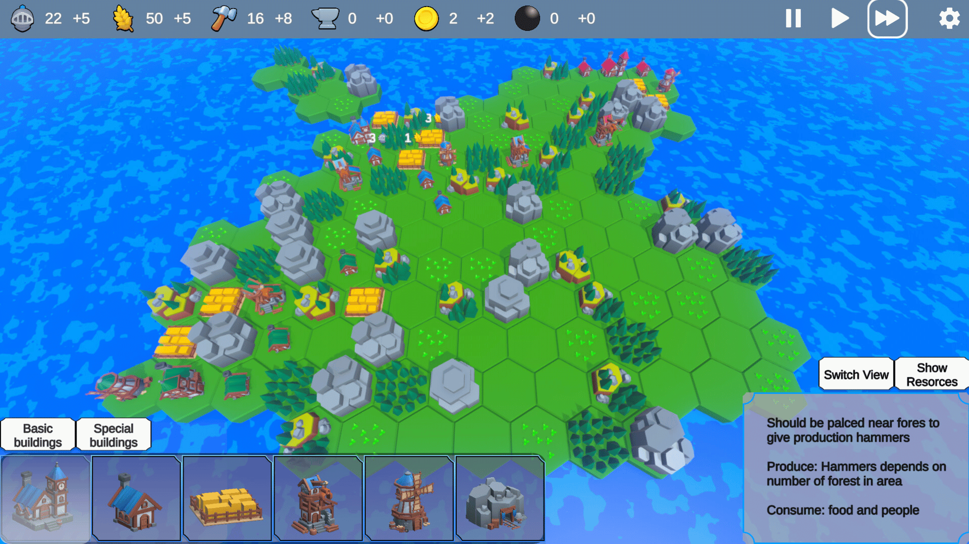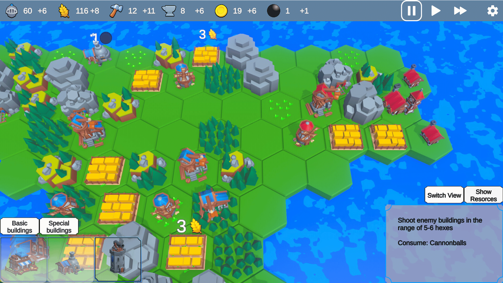 Cannon Island is a roguelike city builder, where you colonize procedurally generated islands and fight rivals. Wise building placement and resource management are the key to victory.