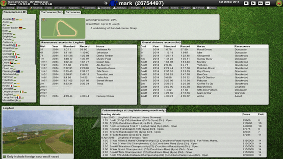 Starters Orders 6 is an in-depth Horse Racing management simulation. Train your string of horses and race around the globe. Build up your stable and breed new horses. Take the role of the jockey and ride in races (with Oculus Rift support). Thousands of horses and hundreds of jockeys and trainers with the most realistic races ever in a horse racing simulation.