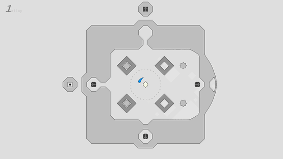 Pertinence is a top-down adventure with minimalist graphics that explores various puzzle and action mechanics. The goal of the game is to freely explore rooms in a grid layout while collecting as many "alloy" as possible. These will unlock new areas and abilities. To create an environment of self-discovery and curiosity, Pertinence instructs the player as little as possible.