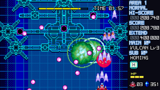 Blaze of Storm is a vertical scrolling shmup in which you use explosions from a variety of sub weapons to destroy enemies in cyberspace.