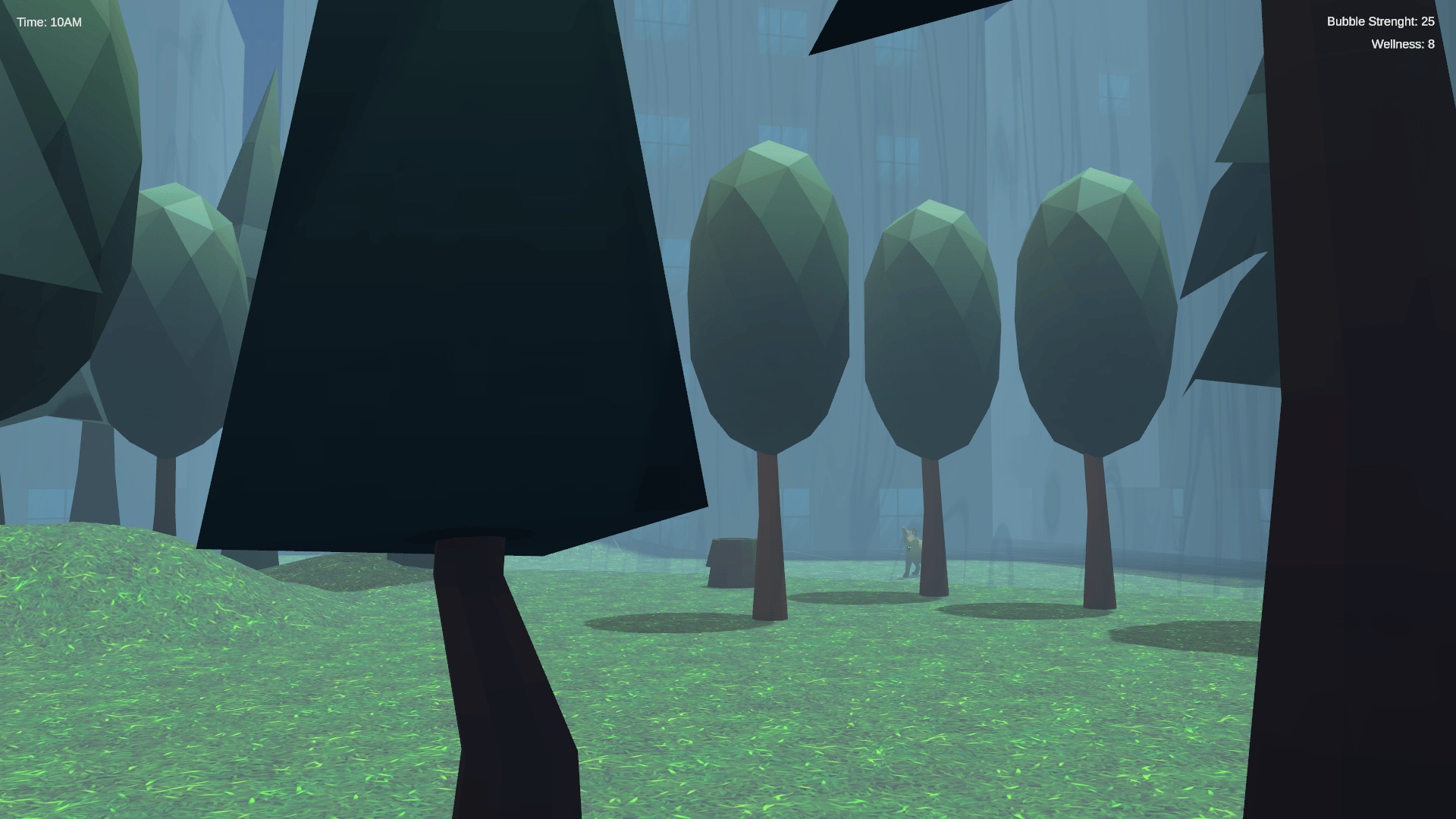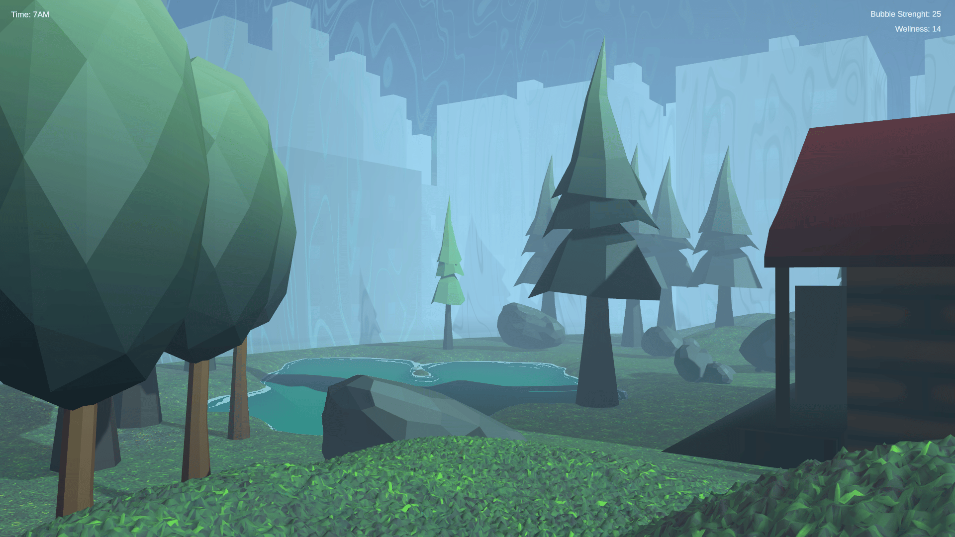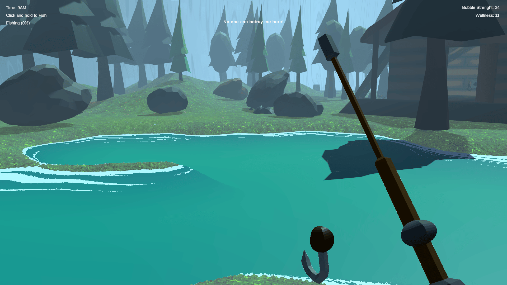 Live inside the glade of tranquility, shielded by a bubble from the outside world. You are isolated here, nothing and no one can disturb you. You spend your days fishing while the world around you develops in chaos. How long will you manage to live in this perfect place of tranquility until the bubble bursts and you have to face reality?