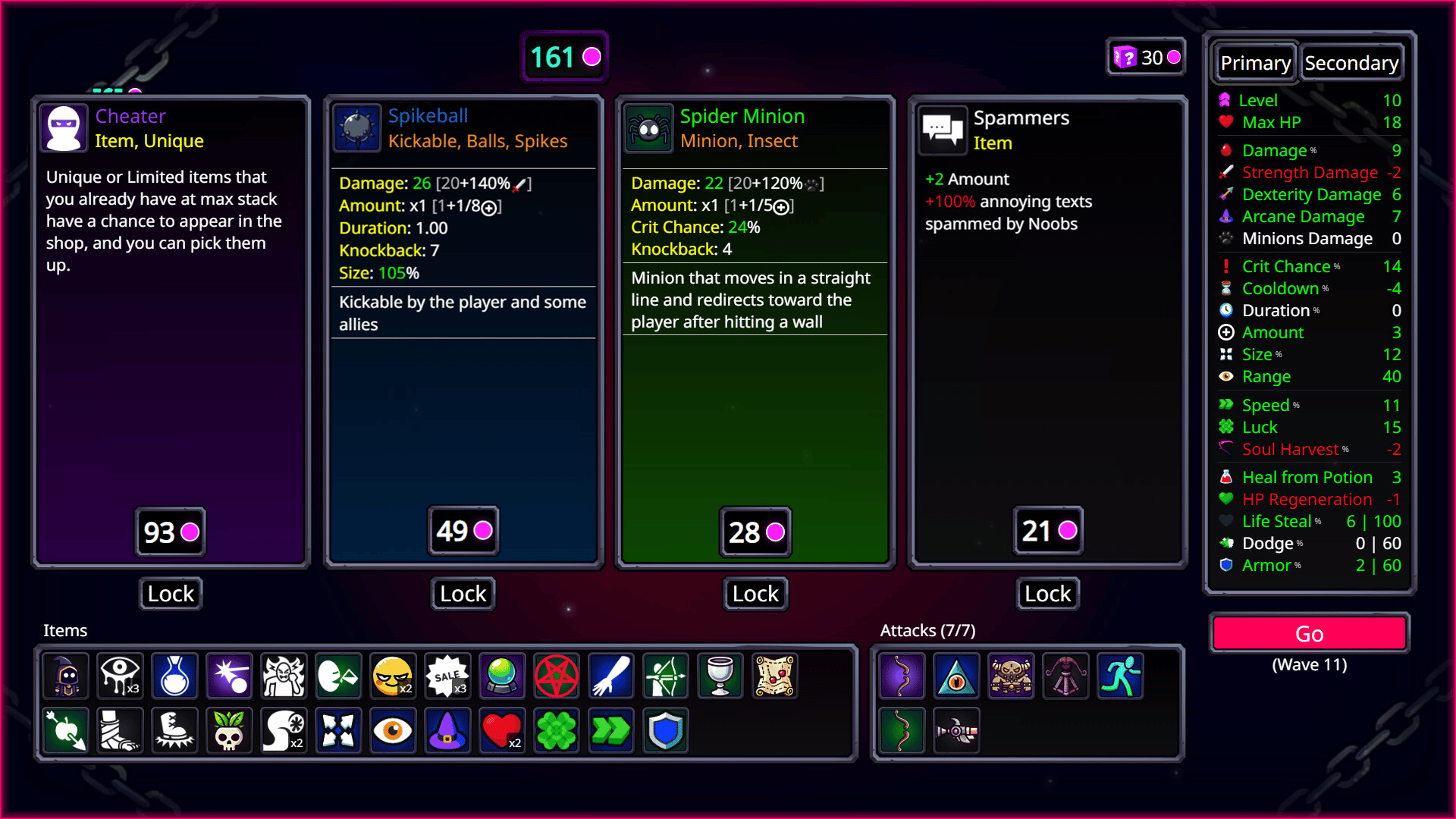 You are the final boss in this brutal synergy arena roguelike. Select a character, equip boss patterns and combine tons of attacks to create unique builds. Play solo or in co-op!