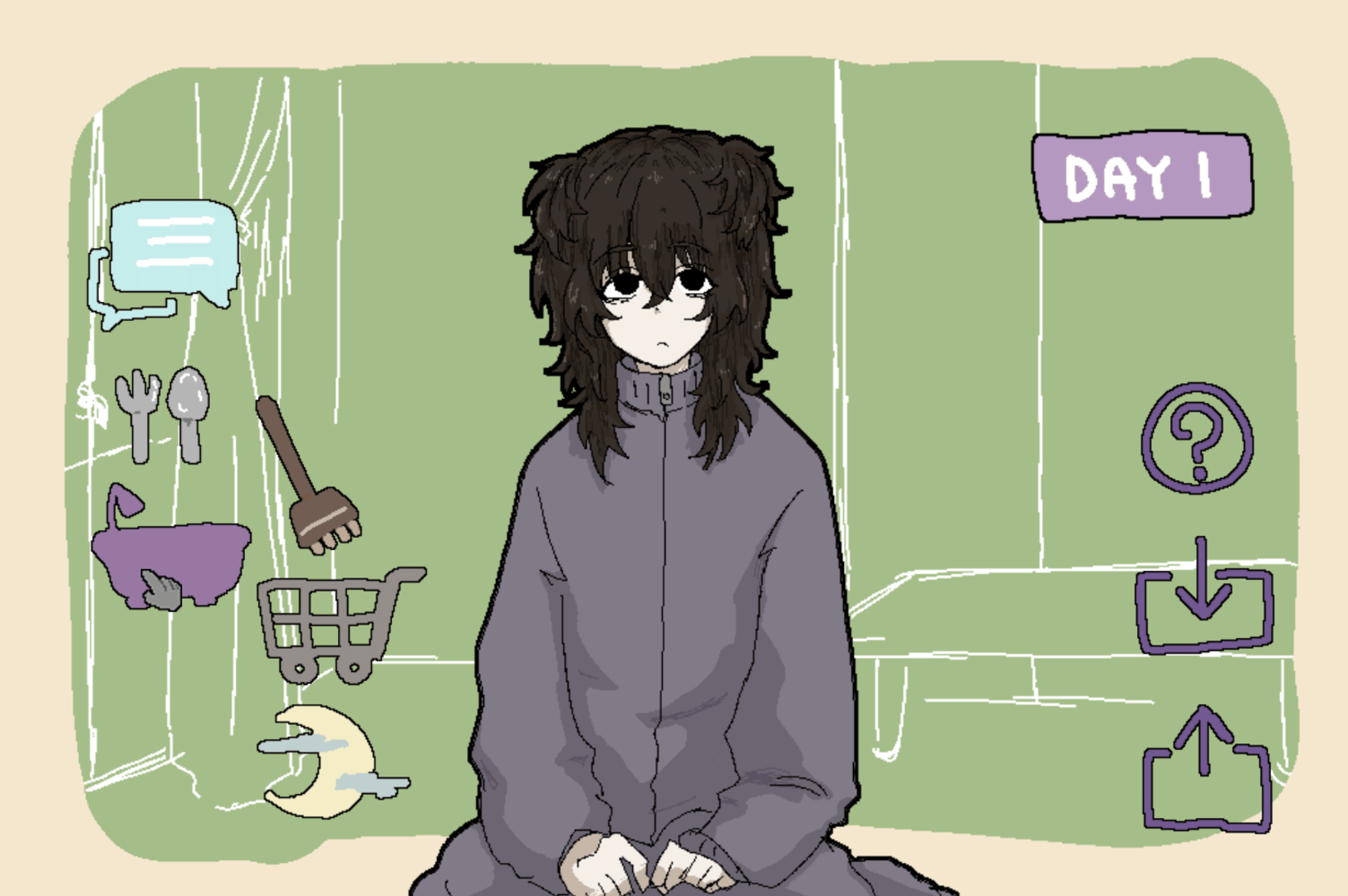 A (self-proclaimed) heartwarming visual novel about spending the days with your dog. Mugi-chan was abandoned at the shrine; now it's time to take him home! But beware: your guys' mental health is already in shambles! Let your guard down, and you break! Every day, you have 6 options! Talk, eat, bathe, clean, shop, sleep...Live the days like a human! This world might be a dump, but let's make it out alive!