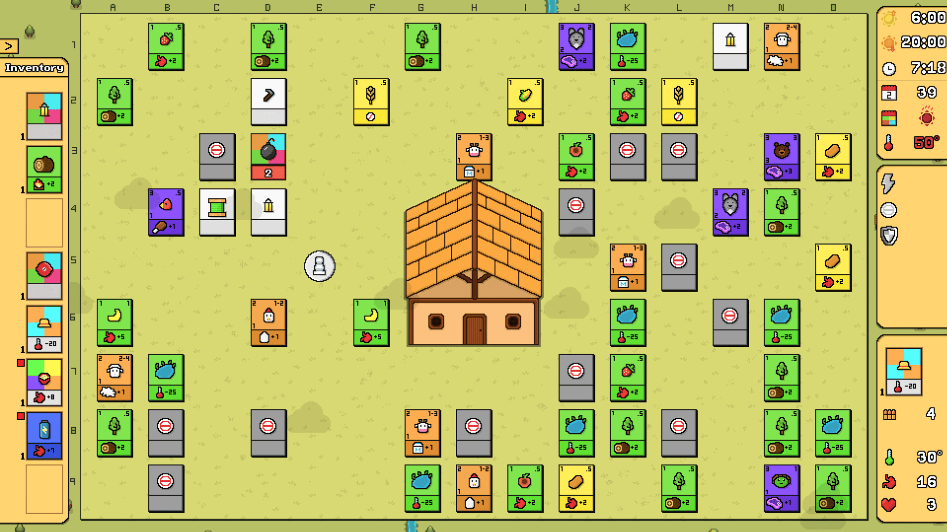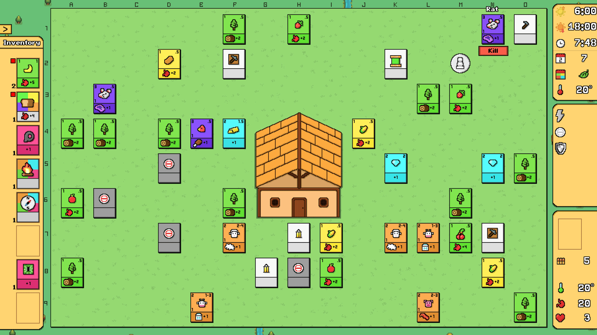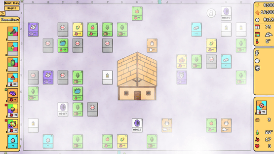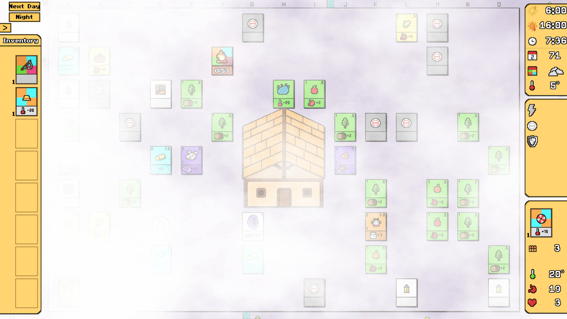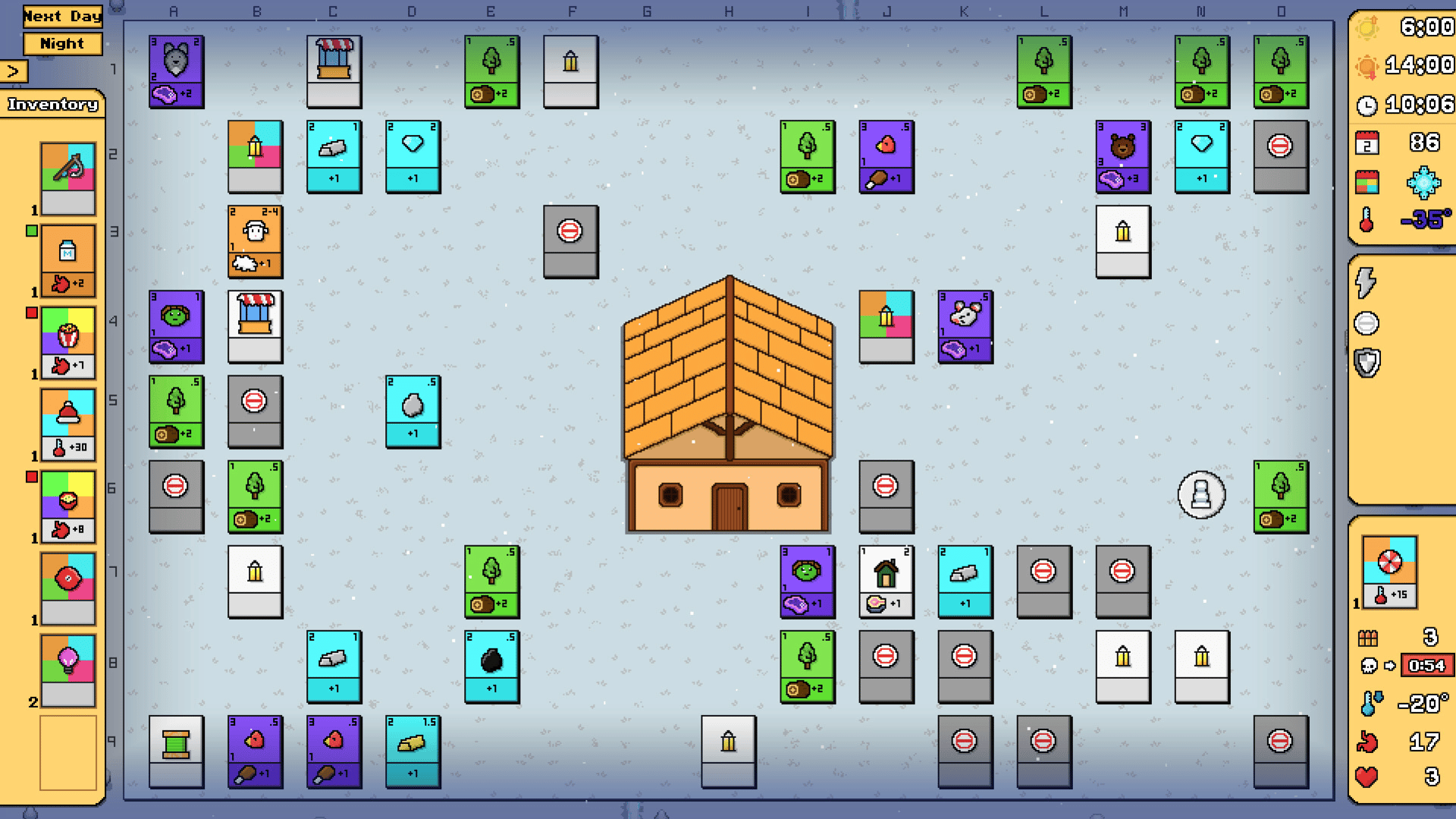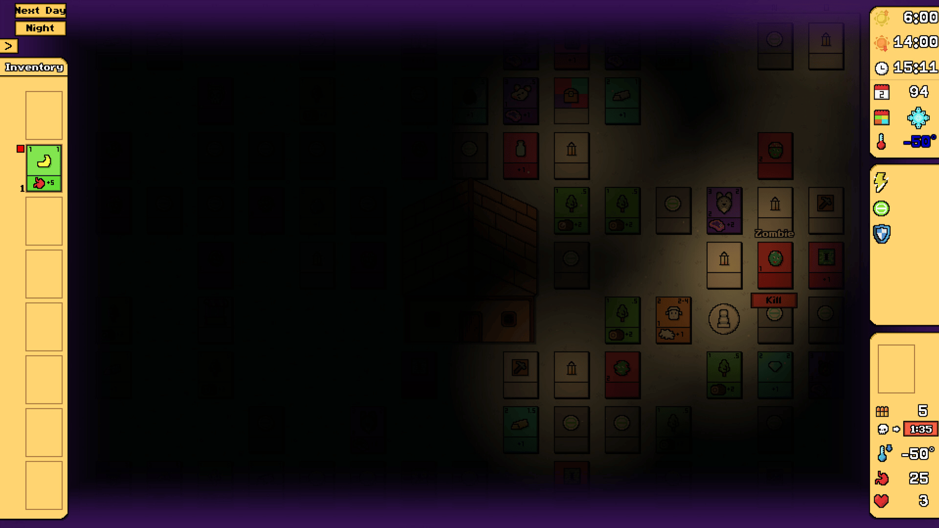 "Necropolis Nights" is a survival card game where you gather resources, craft, farm, and hunt by day, then fend off zombies at night. Strategize to survive and thrive in a world overrun by the undead.