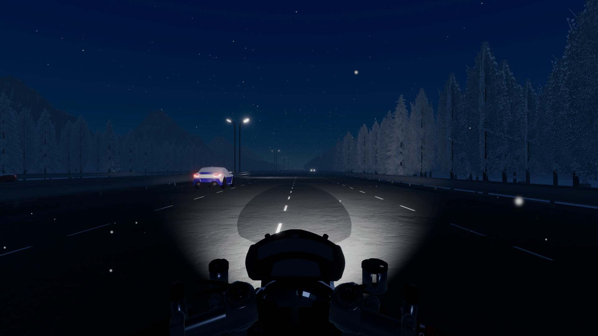Imagine riding a motorcycle freely on an endless highway at night, embraced by the silence of the night. Cruising under the glow of streetlights creates an incredible atmosphere. Turn on your motorcycle's headlights and get ready to feel the joy of gliding across the asphalt!