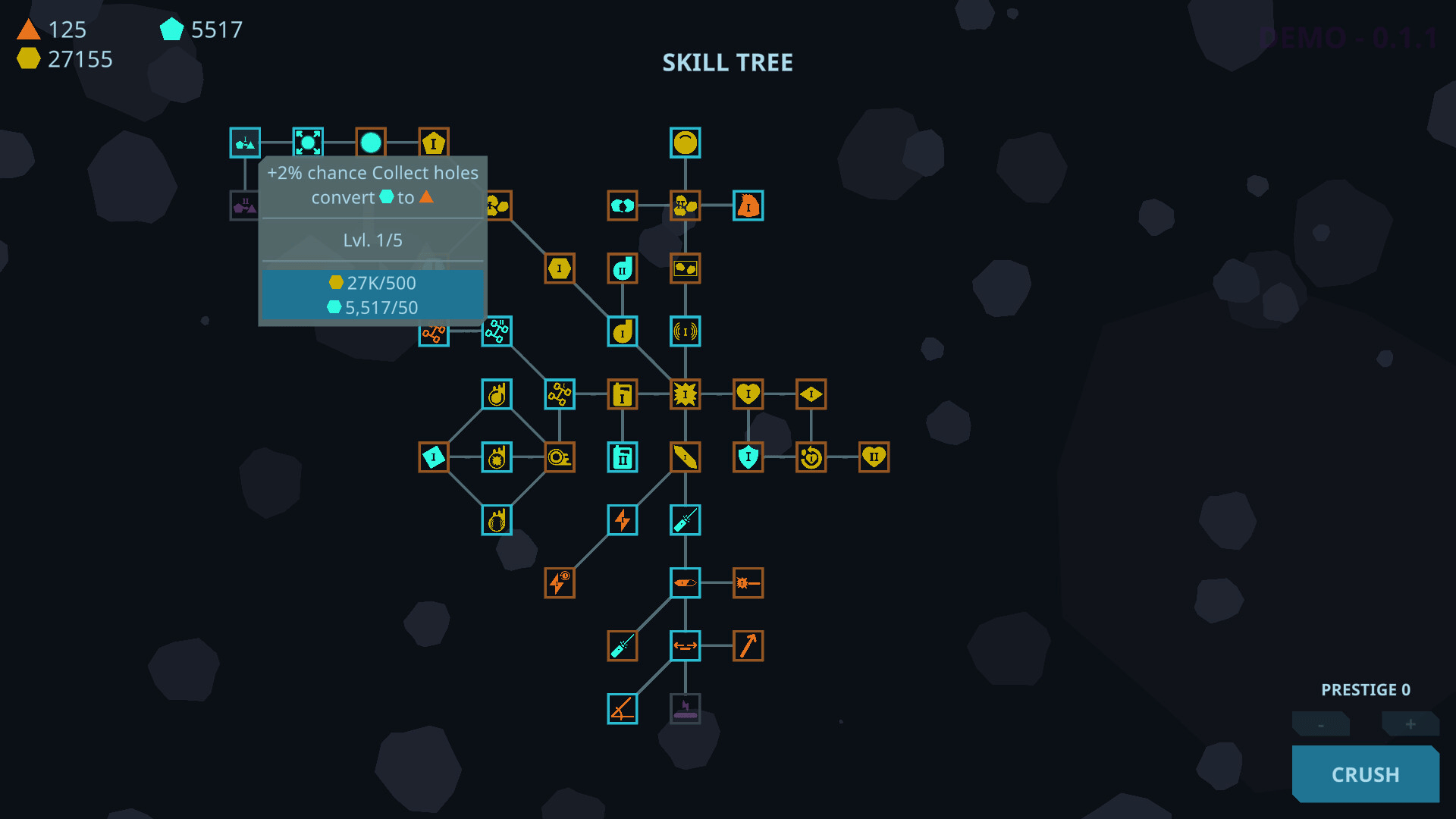 Crush, upgrade, explore! This incremental clicker puts you in control of a little rock crusher on a mysterious planet. Uncover its secrets and your destiny as you complete the skill tree.