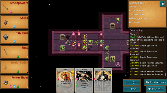 Bite sized solo dungeon delve. Use cards to activate gear or special effects as you delve through dungeons. Attack, block, move, heal, and interact with the environment using the unique card & gear activation system. After each delve upgrade your gear and cards to exploit powerful combos.