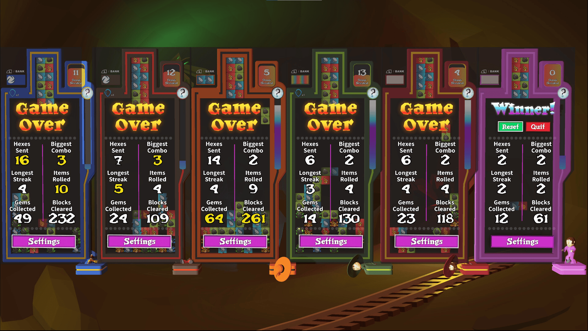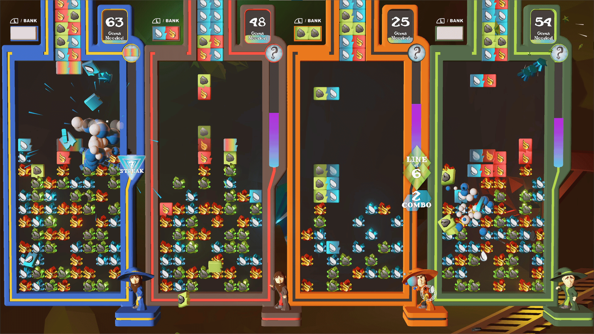 Sorcery Slam is a competitive/party puzzle game inspired by retro era classics. Play with up to 6 Sorcerers locally or online to collect powerful elemental Gems and be the first to power up your ultimate final blast for the win!
