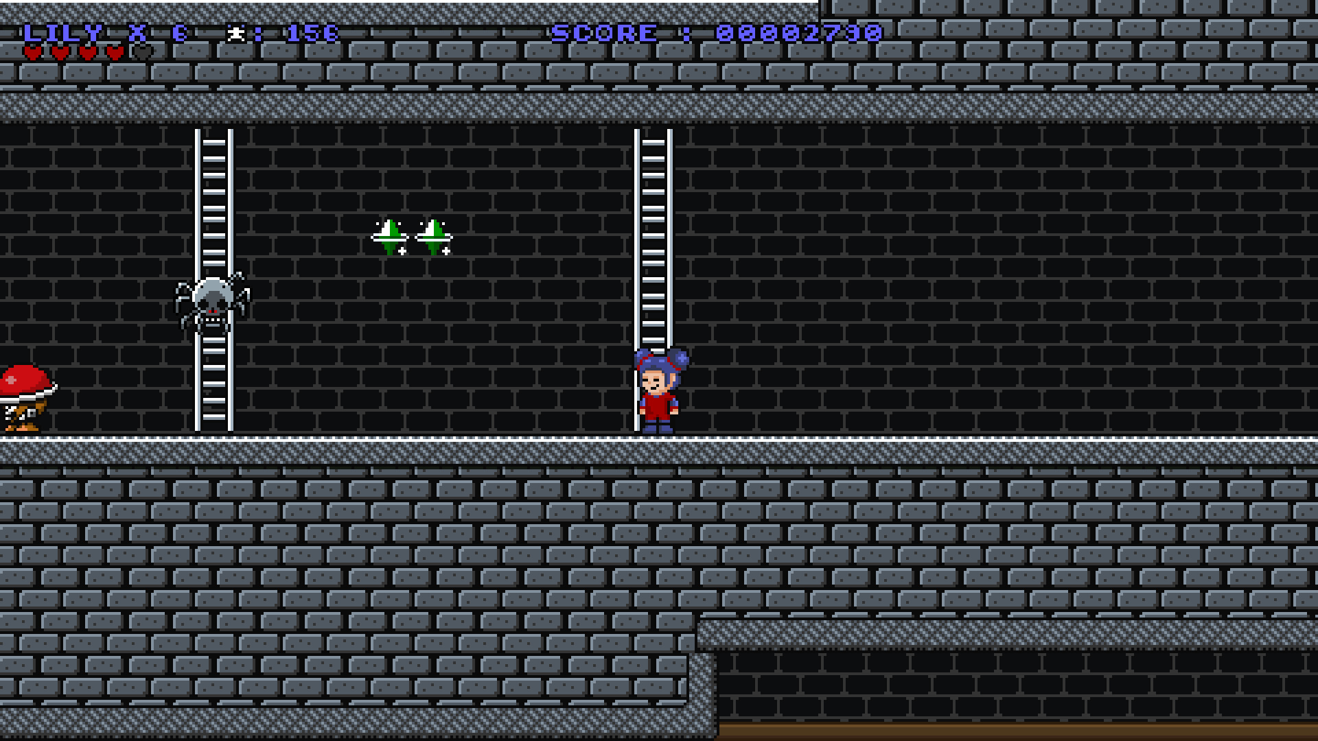 Classic retro-style platform game. Help Lily or Sury save your friends from the evil Wuning through 8 worlds and 32 levels. In this game you will find 32 challenging levels, find secret treasures, jump, crush your enemies and go through multiple obstacles, stairs, cliffs, spikes, various enemies and most importantly, save your companions from the hands of Wuning to prevent them from destroying the planet Cristya.