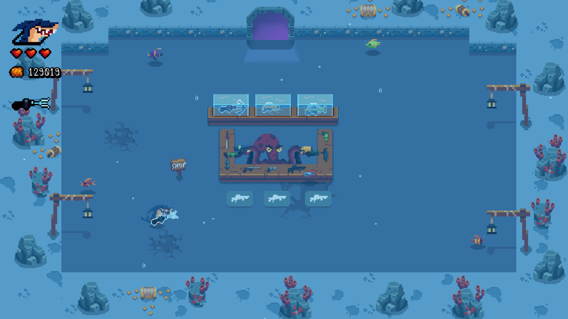 Dive into a fast-paced underwater roguelike! Battle swarms of sea creatures, cursed pirates, and colossal bosses as you explore unique aquatic biomes. Collect a variety of weapons, uncover treasures, and survive the unknown in an epic journey through the ocean depths!
