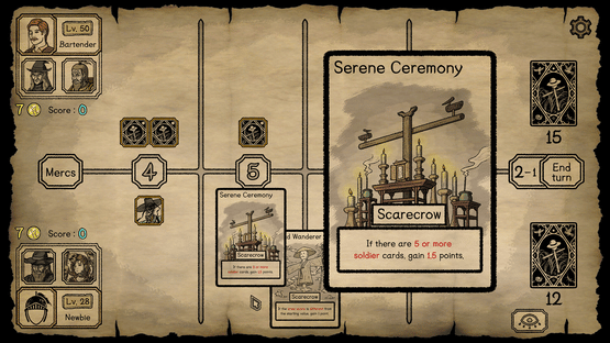 A strategy card game where players use scarecrow cards to deceive each other about the number of their soldiers. With unique yet simple rules, strategic scarecrows, and quirky, hideous mercenaries, players must survive a dreadful battle where losing means being devoured by Water Deers!