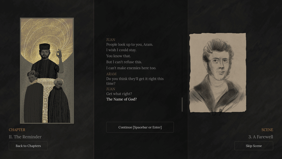 3 short stories set in a mystical fantasy universe. You are a newborn Face of God. Hear tales of human suffering and triumph. Decide which Face of God you are. Pick a different fate for each main character. A short, linear experience that is introspective, emotional and spiritual.