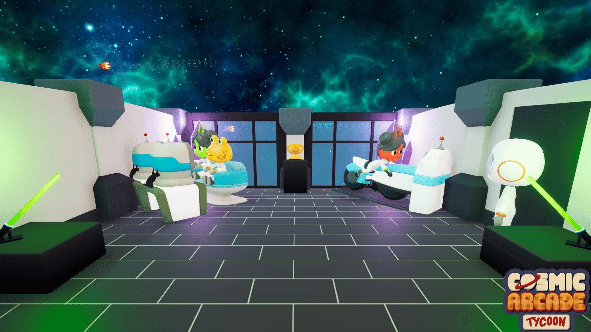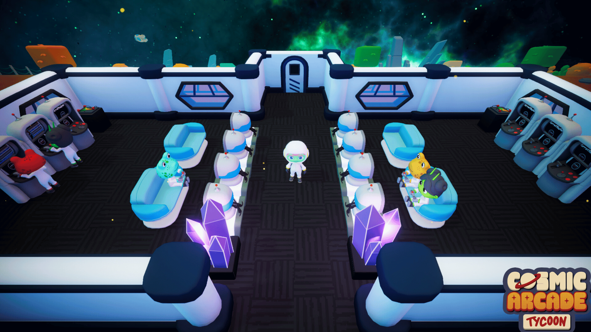 Welcome to Cosmic Arcade Tycoon! Build your own Arcade in this tiny, cozy and casual sci-fi simulation! Unlock new objects, customize your layout and welcome cute alien visitors to create a flourishing entertainment hub!