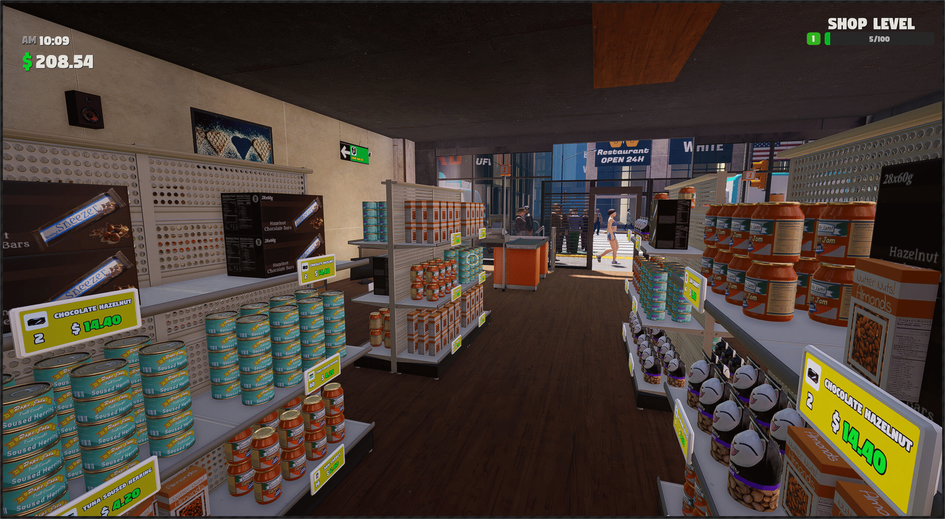 A shop life simulator and management, From owning a small room above the store to selling exclusive products as the highest rated shop, or scratch lottery tickets to try your luck at winning big, In a 24/7 shop, Manage alone or with friends.