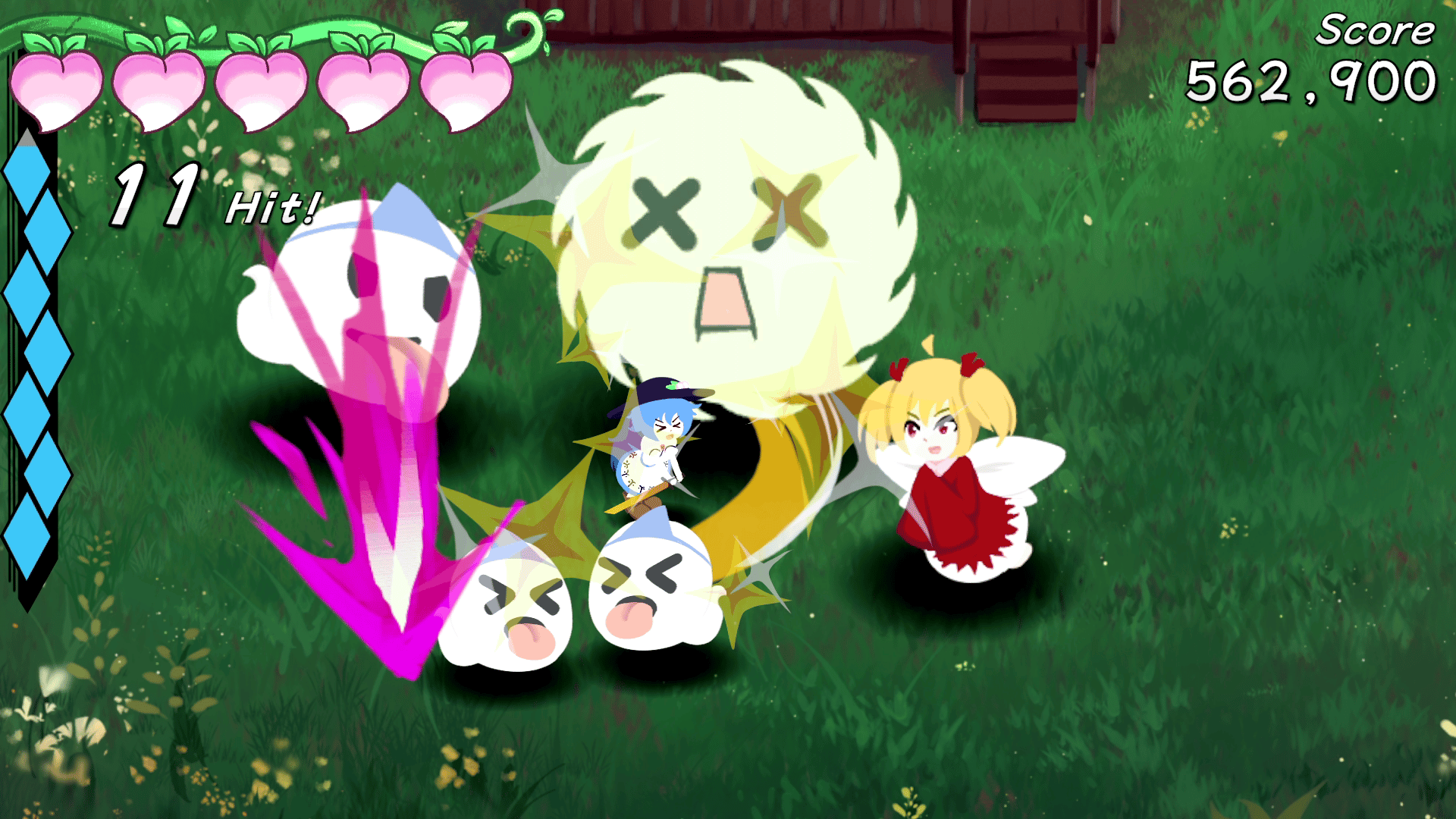 Slice your way through the Garden of the Sun as Tenshi Hinanawi in this fast and arcadey top-down hack and slash game! This game was made in a little over a week for Touhou Fan Game Jam 15!
