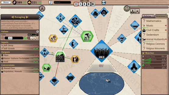 Orbi Universo II is a strategy simulation game developed and published by Orbi Universo Team, slated for release in July 2025. In this abstract strategy management simulation, players guide their civilization from the Neolithic era to the Atomic Age through an innovative node-based system where decisions create cascading effects across society. The game features interconnected elements including agriculture, commerce, religion, and warfare that players must balance while adapting to local resources and regional characteristics. Players can shape unique cultural and religious traits, engage with rival civilizations through diplomacy or warfare, and pursue multiple victory conditions. Building upon its predecessor, Orbi Universo II offers enhanced visuals, rebuilt systems, and deeper gameplay mechanics while maintaining an abstract visual style focused on clarity and readability.
