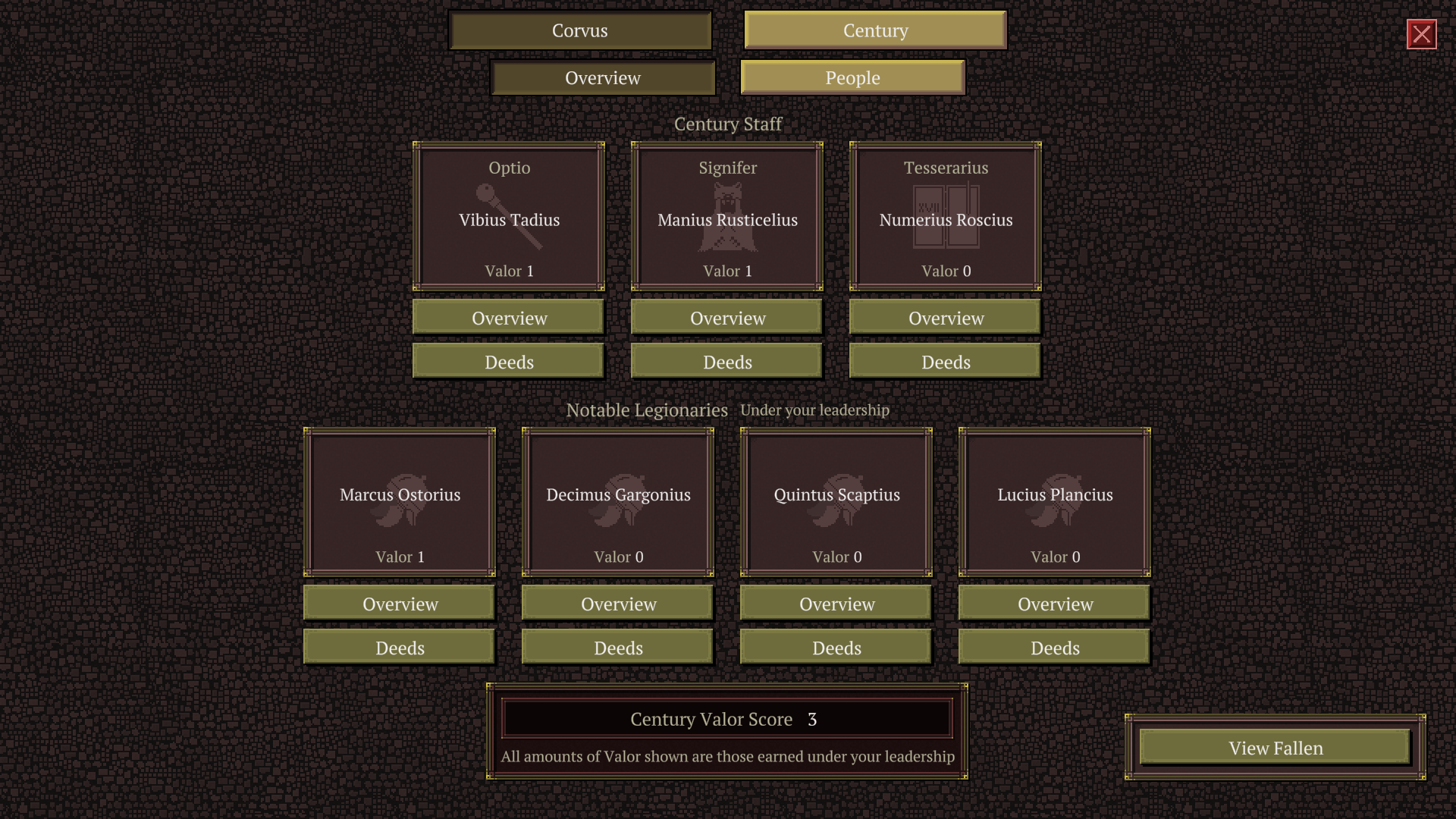 Never Second in Rome is a turn-based historical game with RPG and management elements. You take the role of a Roman centurion in the army of Julius Caesar. Starting right before the beginning of the Gallic War, you will assume command of a century in a newly raised legion.