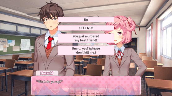 Natsuki Has a Nice Day is a mod for Doki Doki Literature Club! created with a simple but very necessary purpose: to ensure that Natsuki has a peaceful and happy day, without any tragic or frightening events.