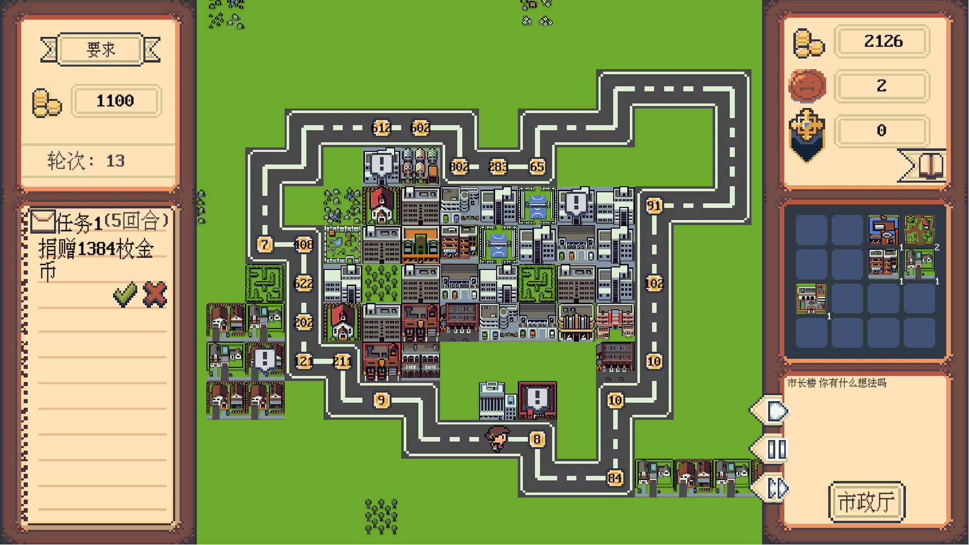 This is a casual simulation building game where a mayor will collect taxes in a city with only one road, and build a prosperous city through the connections between different buildings. It is my first independent game and will continue to be updated. If you have any questions, please contact me