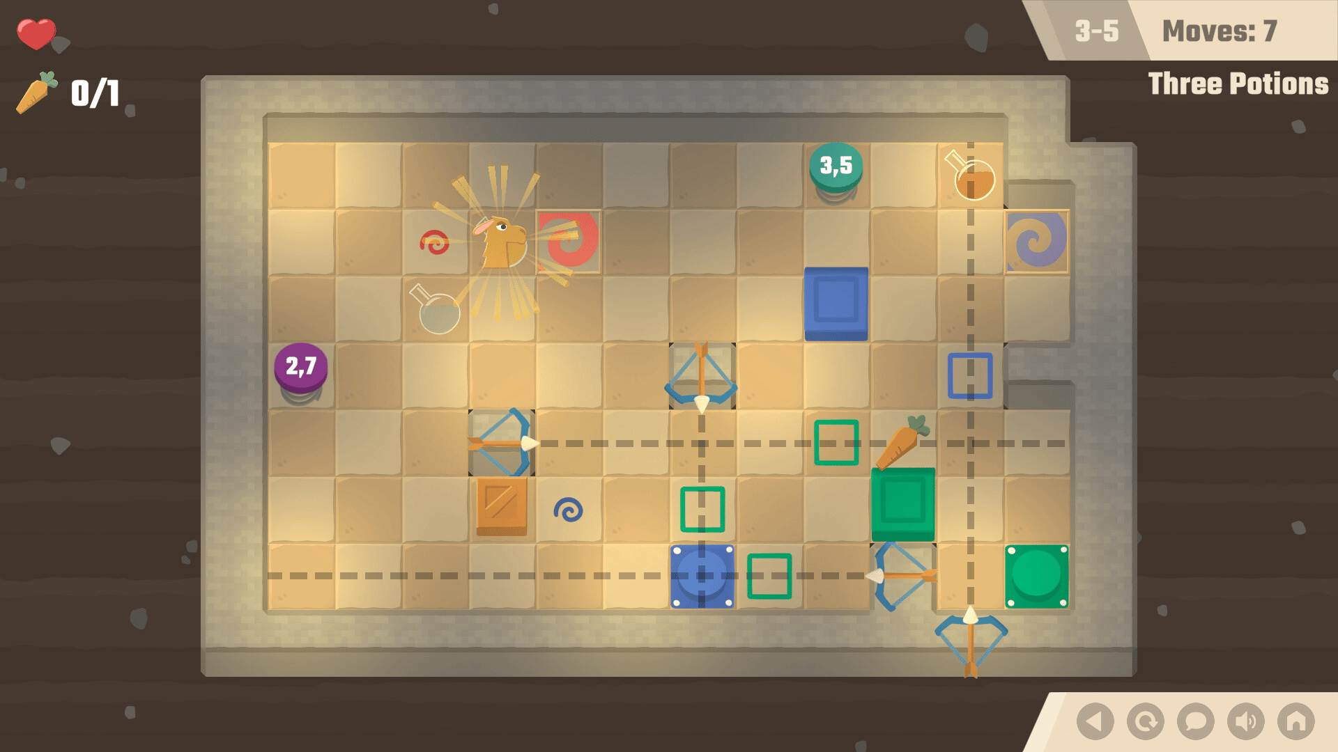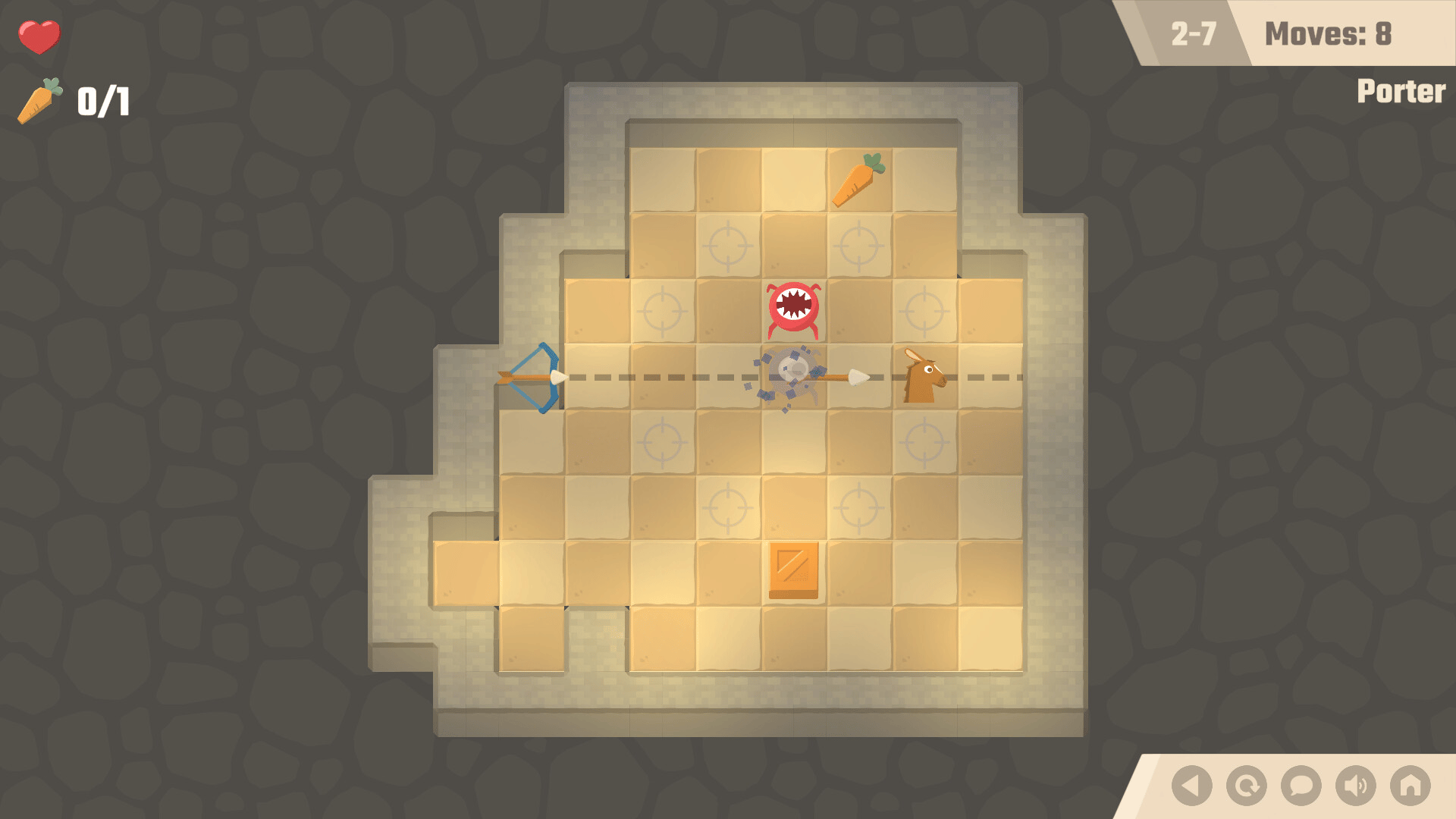 Carrotour, a grid-based puzzle game where you utilize various "leaper" movements to navigate around obstacles and grab delicious carrots. Be a horse, camel, elephant or rabbit! Also, be prepared for intense boss battles featuring bullet hells!
