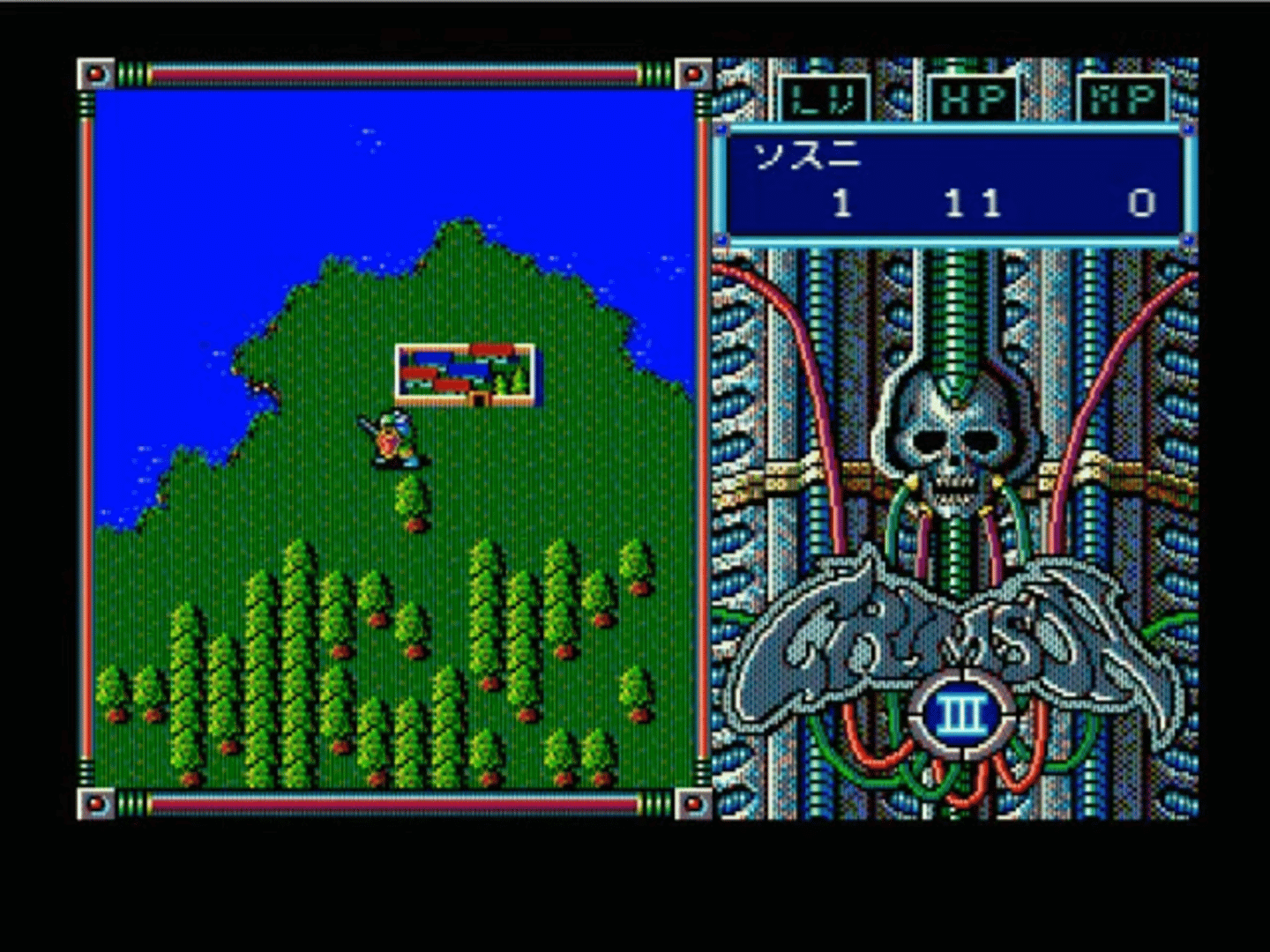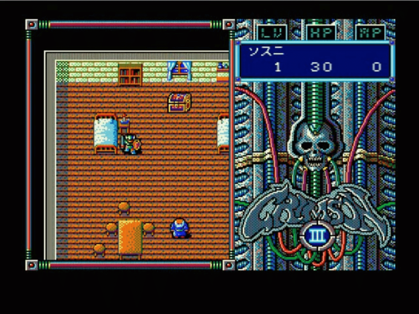 The evil demon Crimson will not rest until humanity is destroyed. The powers of an ancient civilization made his resurrection more terrible than ever before: using robotic technology, he fused himself with a machine and became even stronger. Chosen heroes from different lands must meet each other and join forces to defeat Crimson once and for all. Crimson III plays very similarly to its predecessor. It is a Japanese-style role-playing game with overhead navigation, first-person turn-based combat, randomly appearing enemies, and simple leveling up system. Like in the previous game, the player has to conclude initial chapters dedicated to each of the heroes before controlling them as a party on their main quest. Battles have an auto option, allowing the AI to take over the player-controlled party.