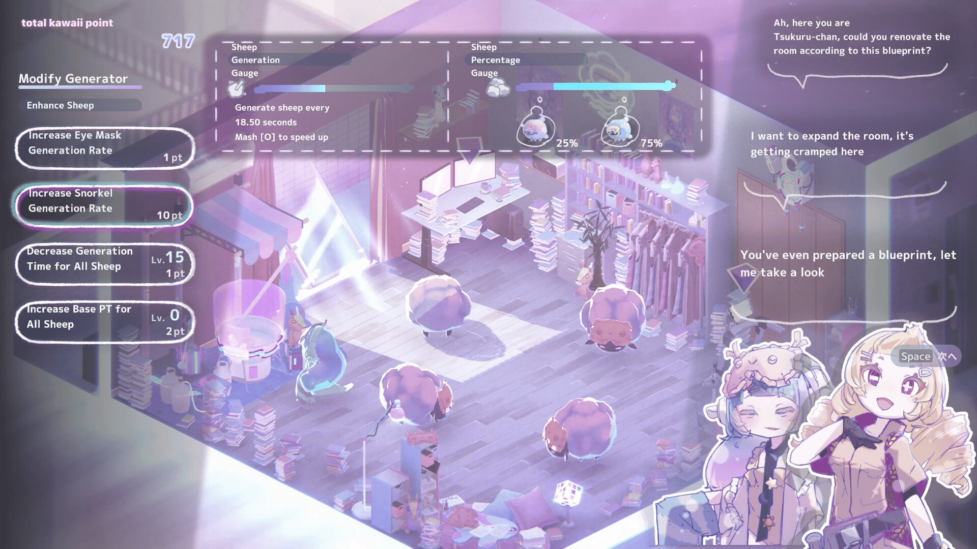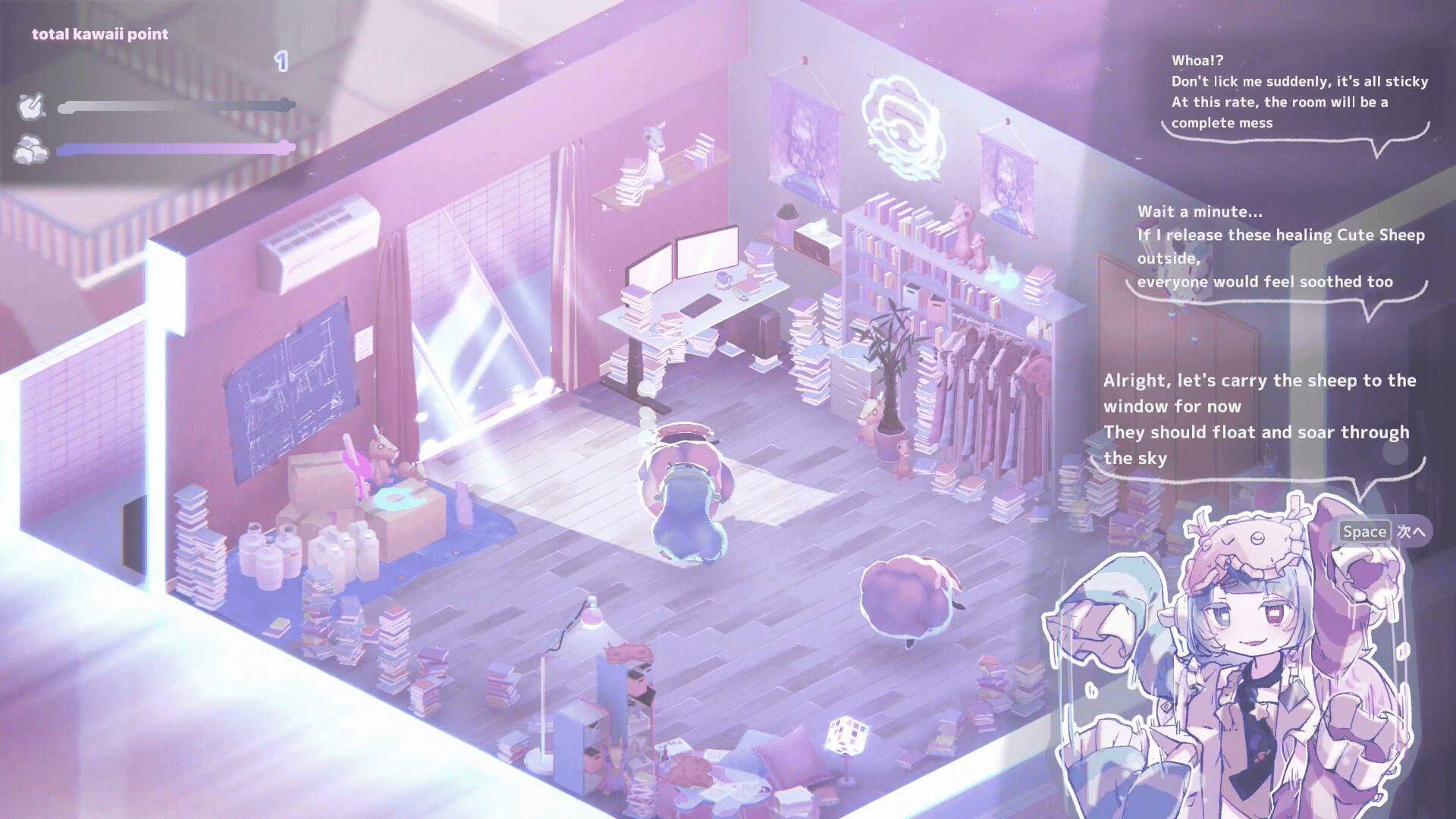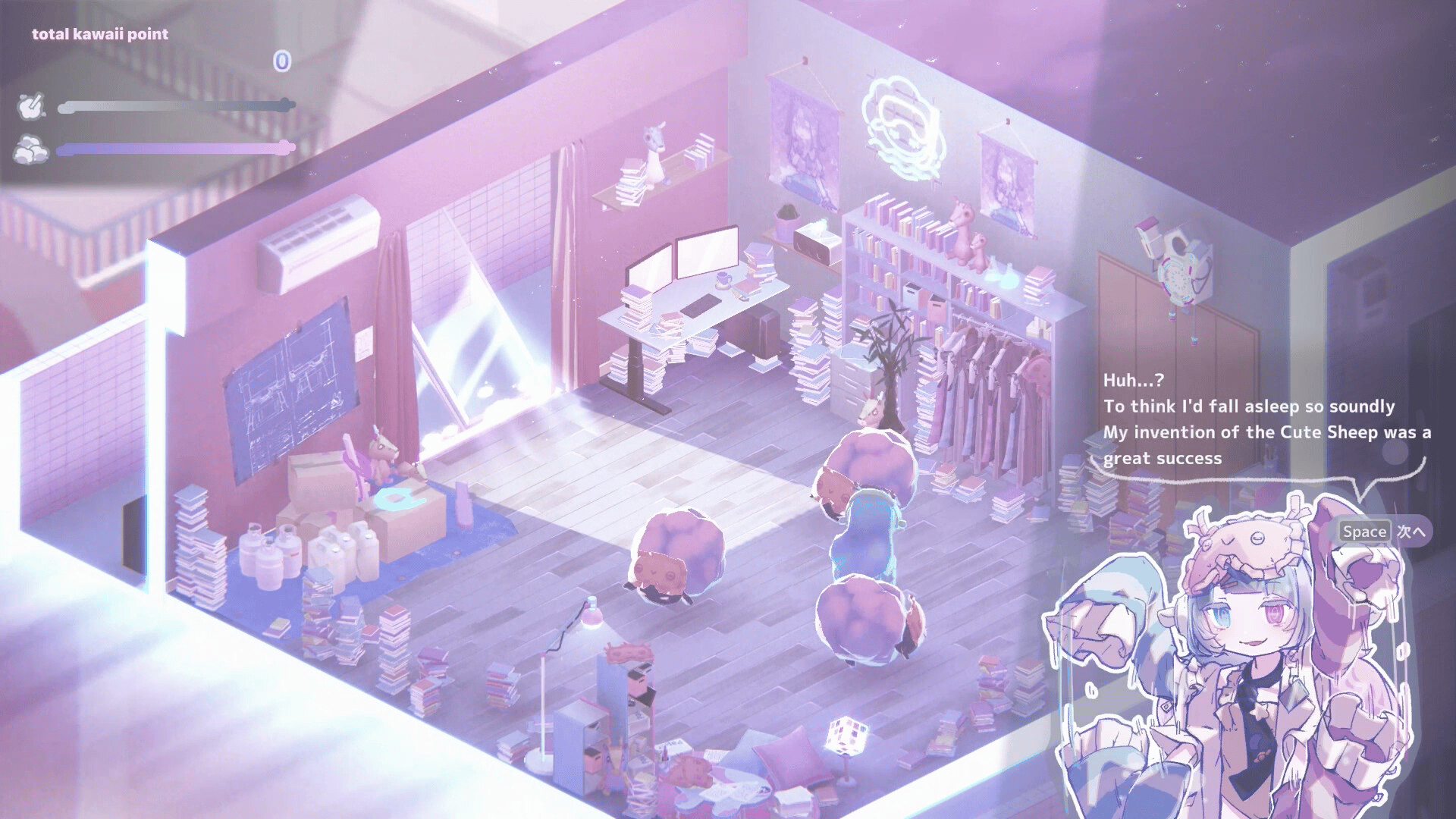 The genius Hakase “Mememe”, who wants to sleep all the time, invented “Kawaii Sheep”, which induces sleep with its mysterious healing properties. This is an exponentially kawaii sheep-carrying game in which Hakase puts the whole world to sleep.