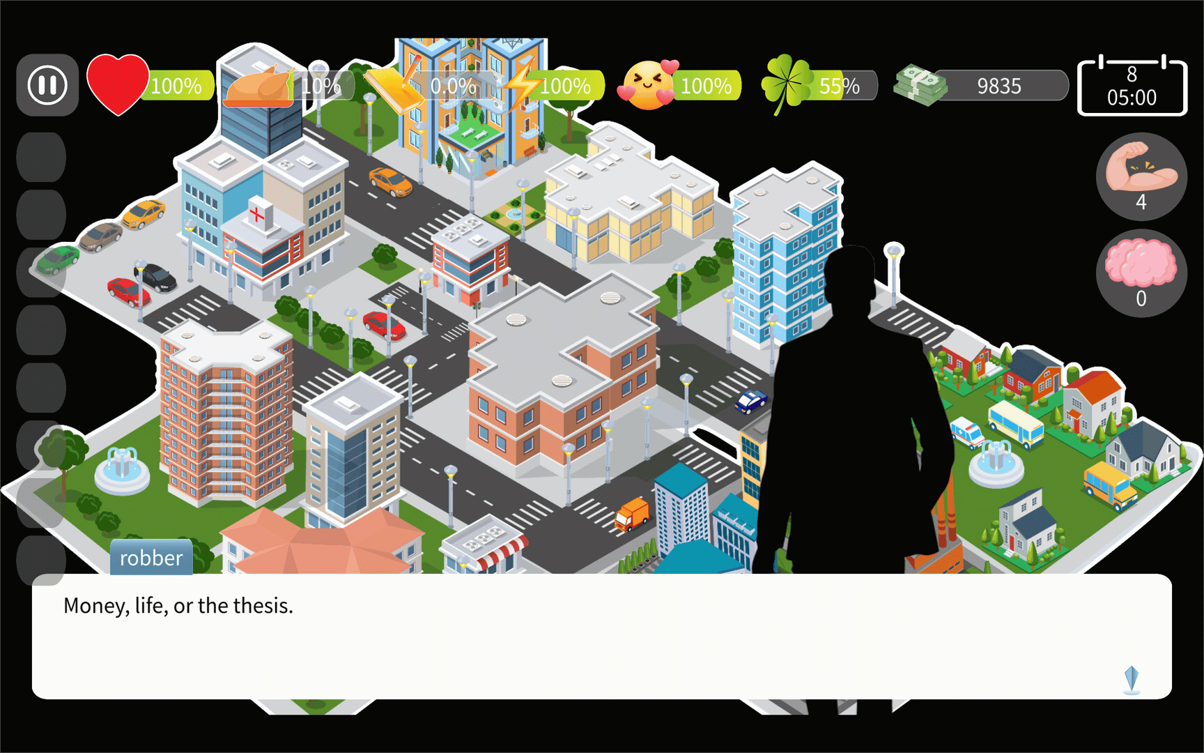 Survive 100 days at Natural Selection University and write a world-changing thesis in this challenging strategy simulation game! Balance time, resources, and sanity as you navigate harsh conditions, random disasters, and absurd campus events.