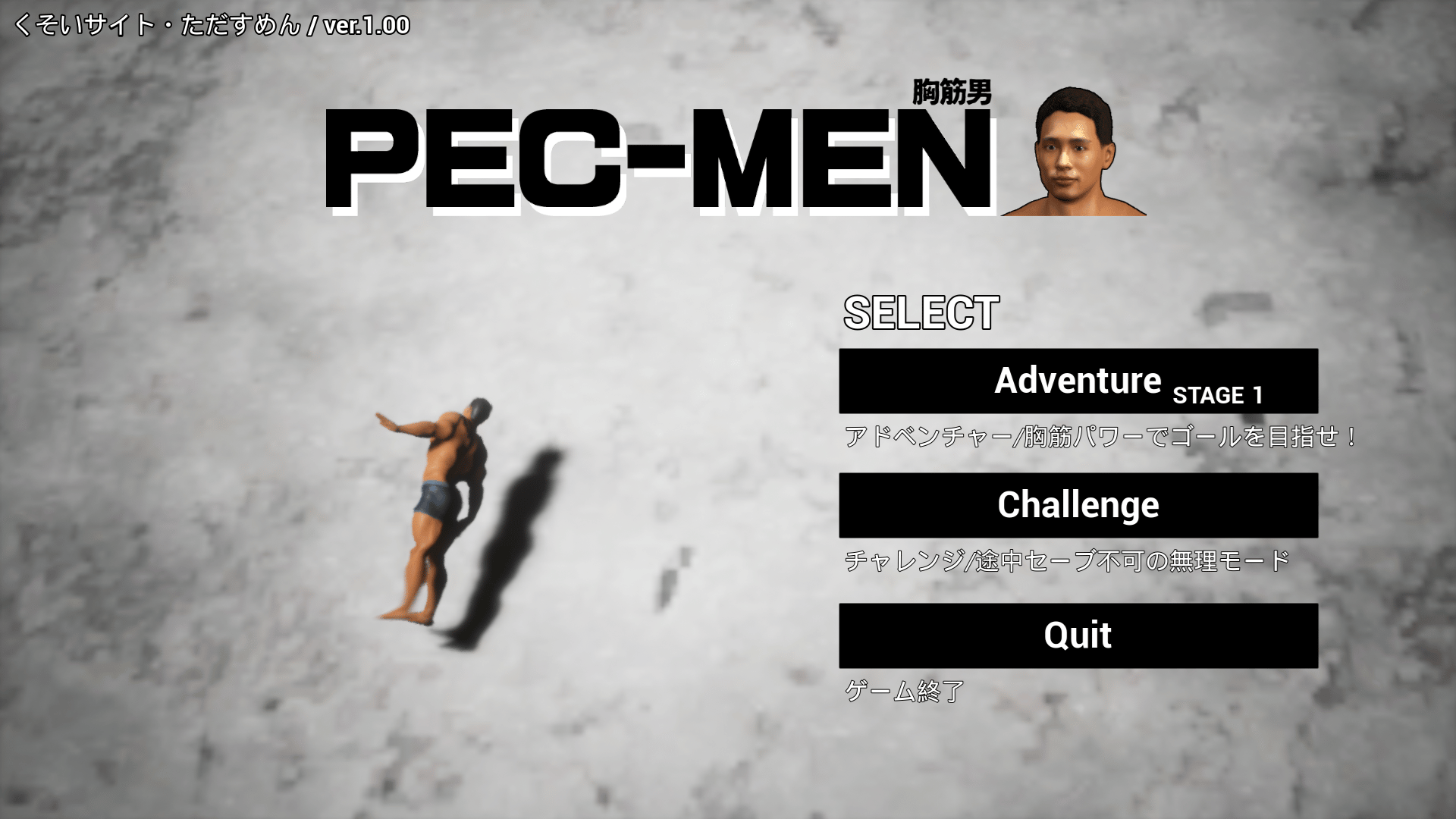 PEC-Men is a free 3D action game with unique and humorous ideas. Players control the macho character “Brother Kenta ” and aim for the goal by climbing over obstacles by twitching the left and right pectoralis major muscles. It features a simple yet stylish game design, and the unique experience of moving the pectoral muscles with just a left or right mouse click is addictive. With an estimated play time of around 60 minutes, this game is perfect for casual players or play-by-play videos. "PEC-MEN" is a novel concept of manipulating the pectoral muscles and a somewhat surreal world view that is worth a try if you like free games!