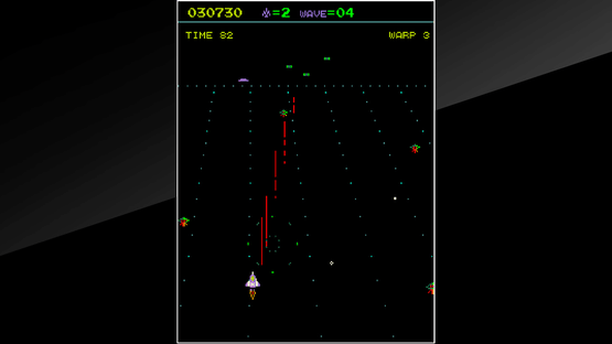 "Juno FIRST" is a shooter released by KONAMI in 1983. Operate your own aircraft to defeat countless approaching enemy UFOs and conquer the WAVE. In an emergency, you can use warp to evade enemy attacks.