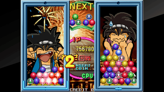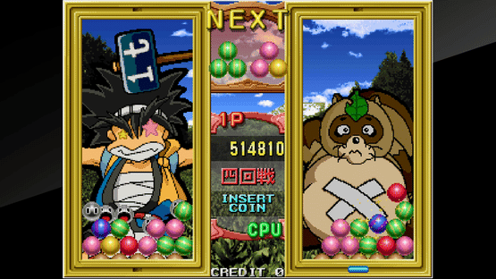 Aim for the winning SENKYU KING!! "SENKYU" is a puzzle game released by SEIBU KAIHATSU in 1995. The game is played by connecting four or more balls of the same color and erasing them to create a chain of four or more balls of the same color, aiming for a high score. In addition to the SKILL TESTER MODE where you can judge your own skill, you can also participate in the SENKYU tournament and aim for the victory in the NORMAL MODE, as well as engage in 2-player versus battles.