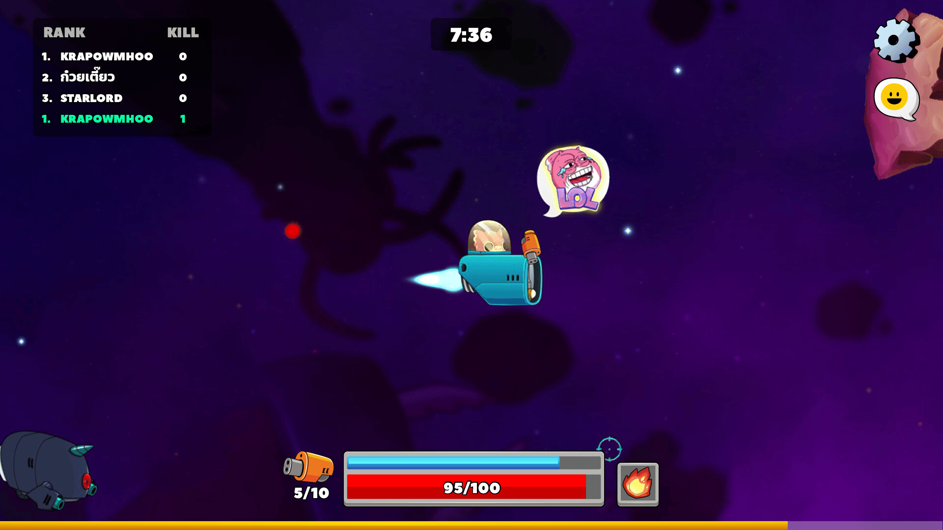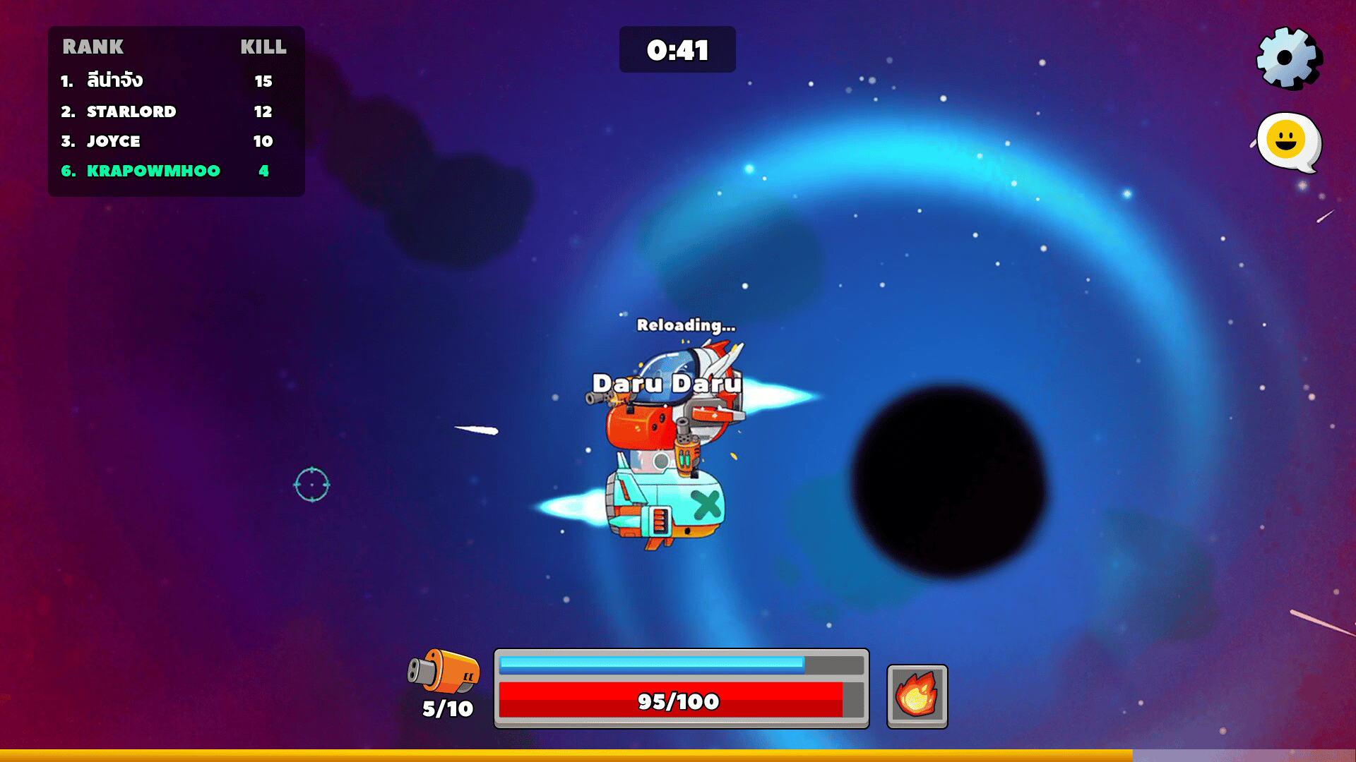 Scrap Down is action shooter arena in the style of a 2D shooter set in a space theme. It offers casual and fast-paced shooting mechanics that are easy to understand. It enhances the fun by allowing players to prank each other with in-game items.