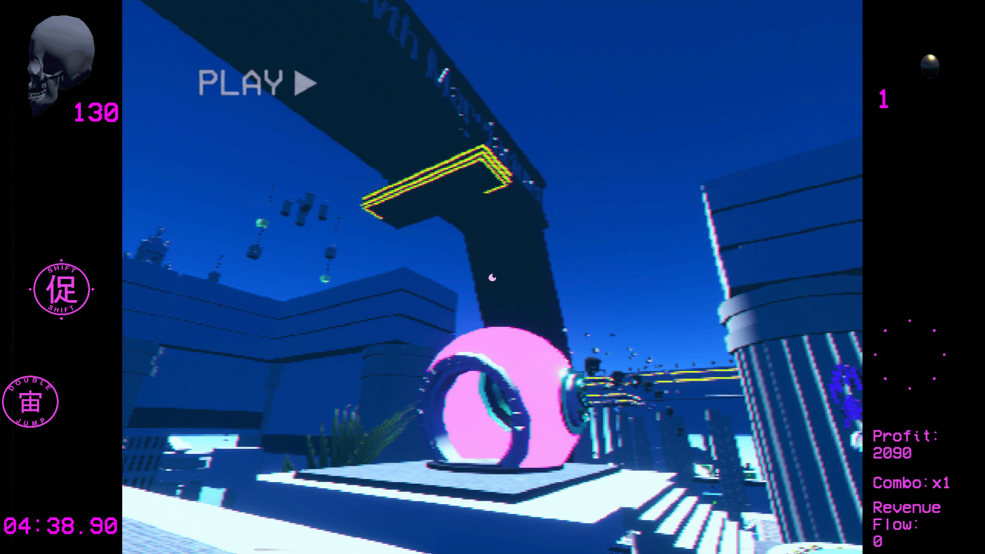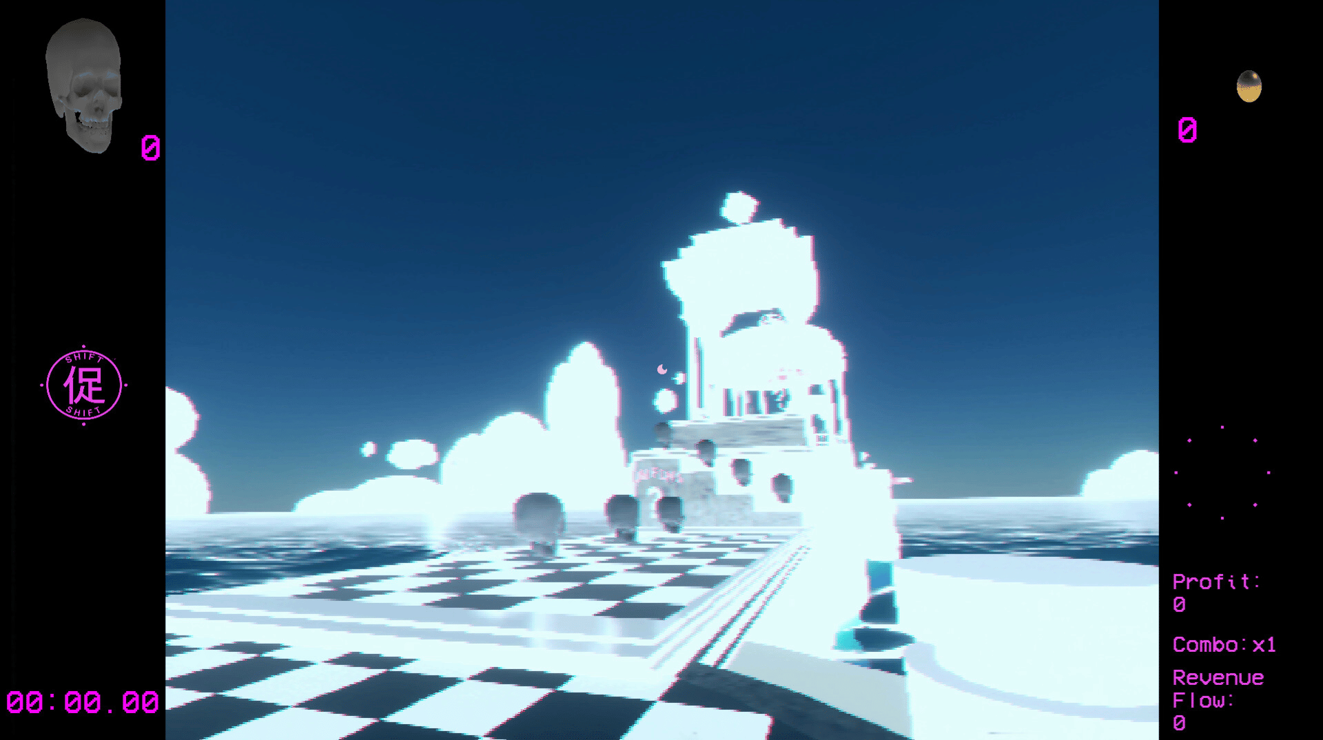 RADIANT ELUSION (光放逃避) delves into the contemporary condition haunted by the past via the visuals of early 3D-graphics and interactive language of a single player first-person platformer with Combo-Collectathon progression- and Time-Attack systems enveloped by a numbing electronic soundtrack!