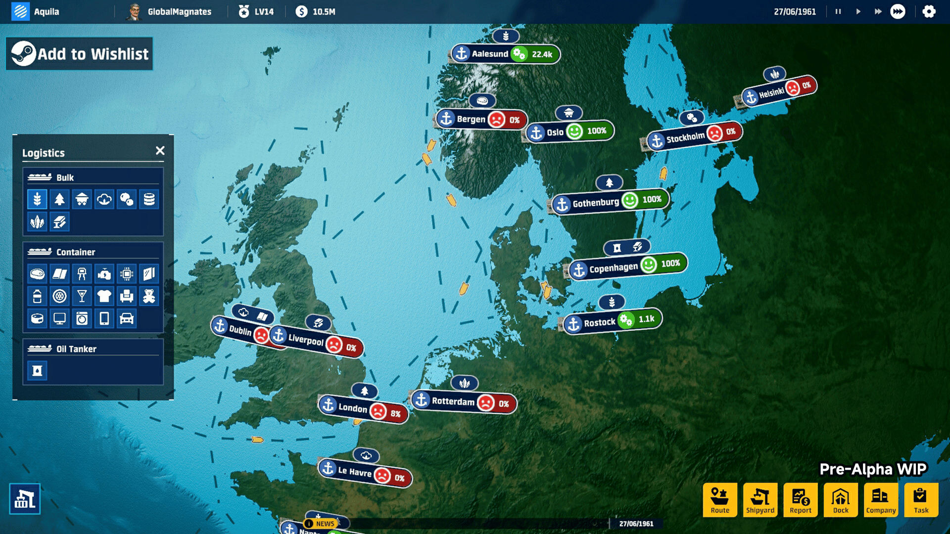 Global Magnates: Shipping Tycoon is a maritime simulation game, placing you at the head of a fledgling shipping empire with a new technology: the shipping container.