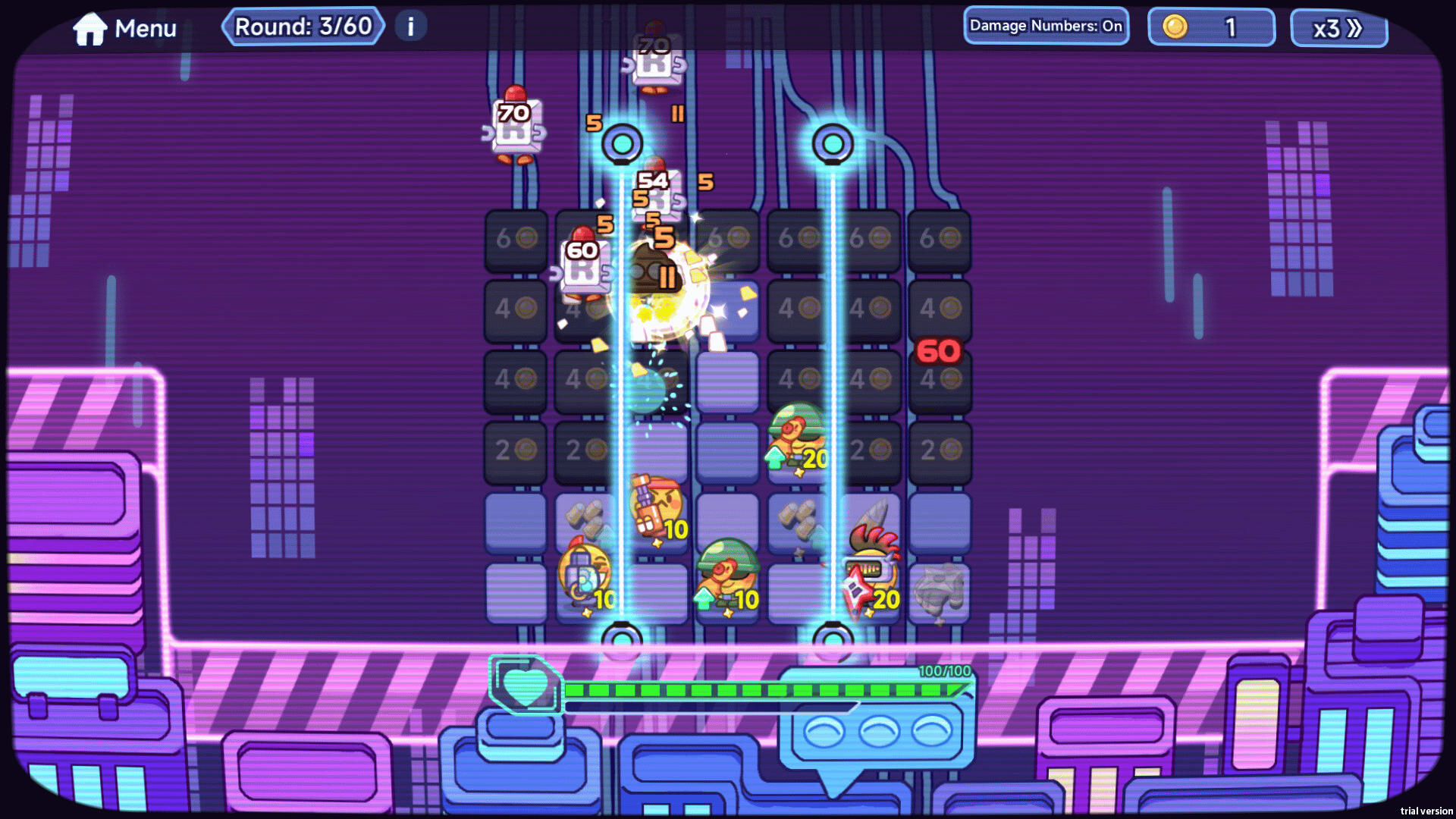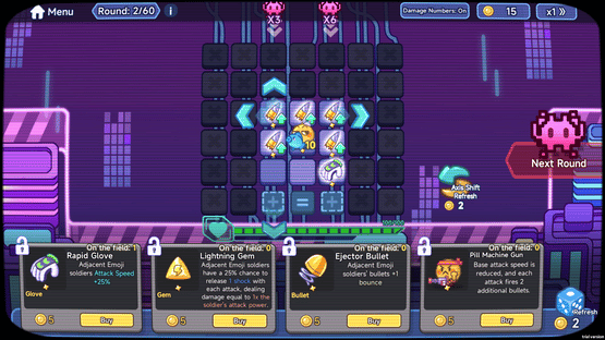 A tower defense game with Roguelike and casino elements. Players create diverse decks using Emoji shooters and various items, activating unique traits to defeat meme monsters from the digital world.