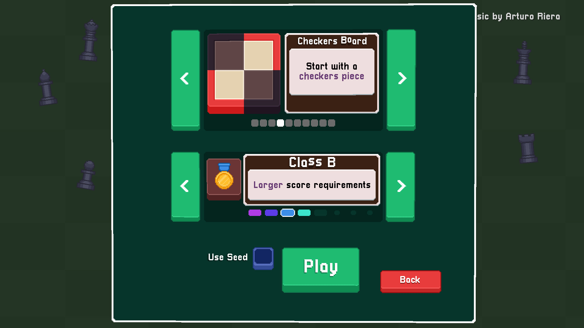 Position your pieces carefully to max out your score in this Balatro-inspired chess roguelike. Enhance your pieces, purchase powers, and win bonuses from optional challenges, but be careful - your board only has so much room.