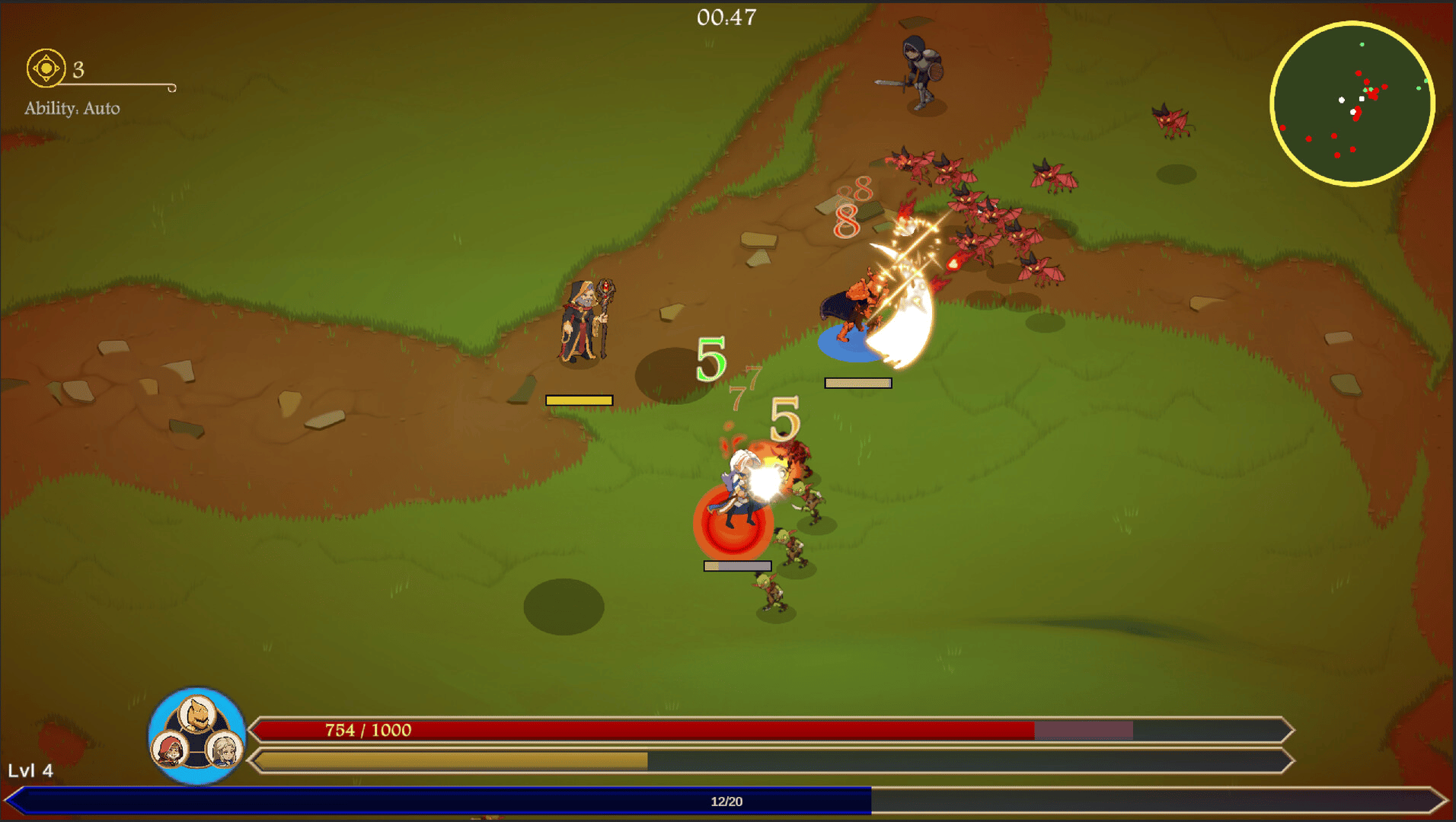 Action Roguelite that blends elements of Vampire Survivors with Fantasy RPG themes. Introduces a unique mechanic where the player controls a party of three heroes instead of one, offering a fresh strategic gameplay experience. Featuring RPG-inspired hand-drawn art style and an intriguing storyline.