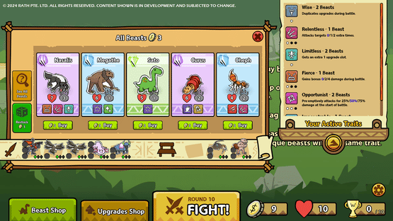 Beast Brawl is a unique rougelike which pits teams of primal beasts against one another in a battle for survival. Thousands of combos and strategies to try and evolve your team into the apex beasts of the kingdom.
